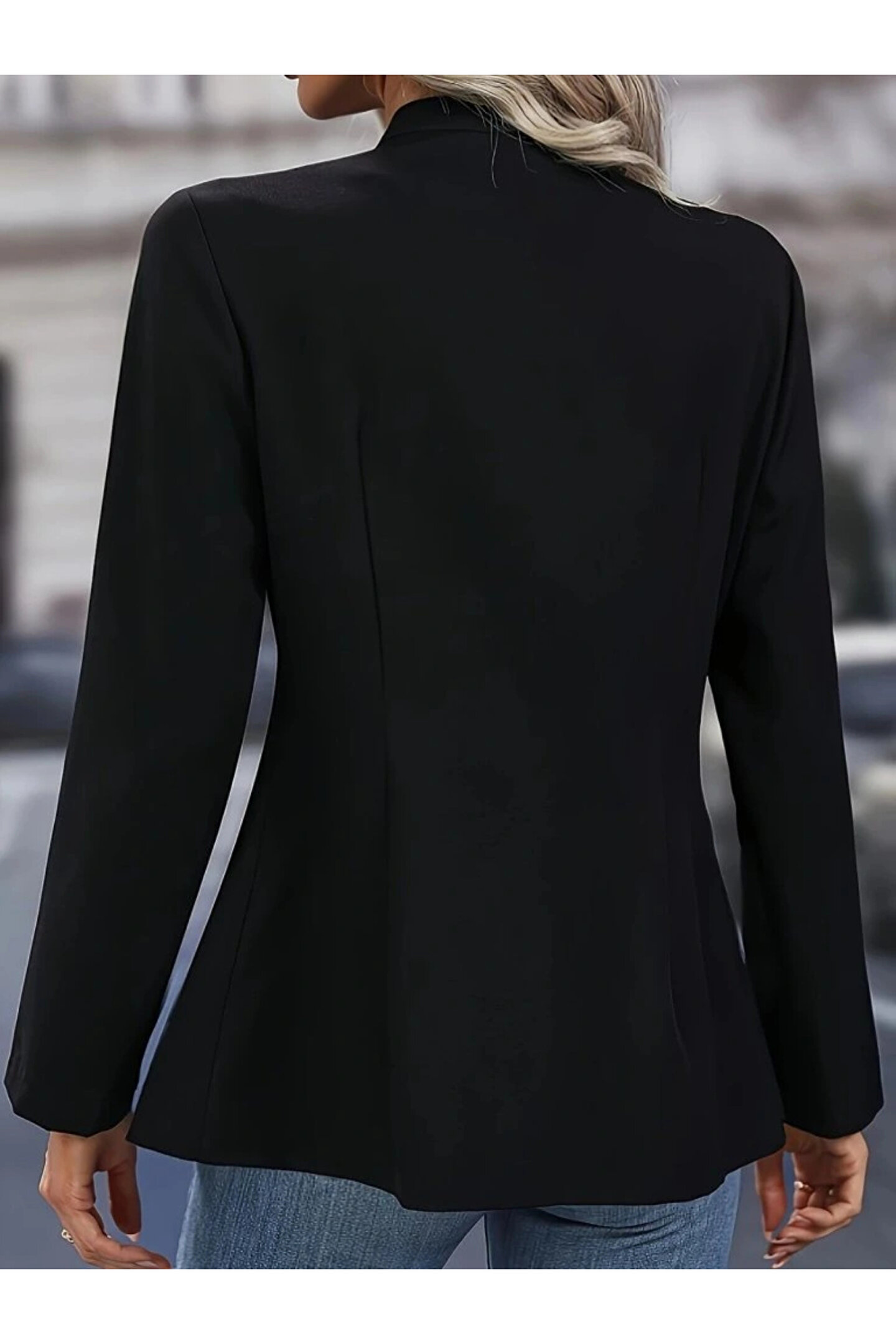 Kadın Uzun Kollu Hakim Yaka önden Düğmeli Kısa Atlas Ceket