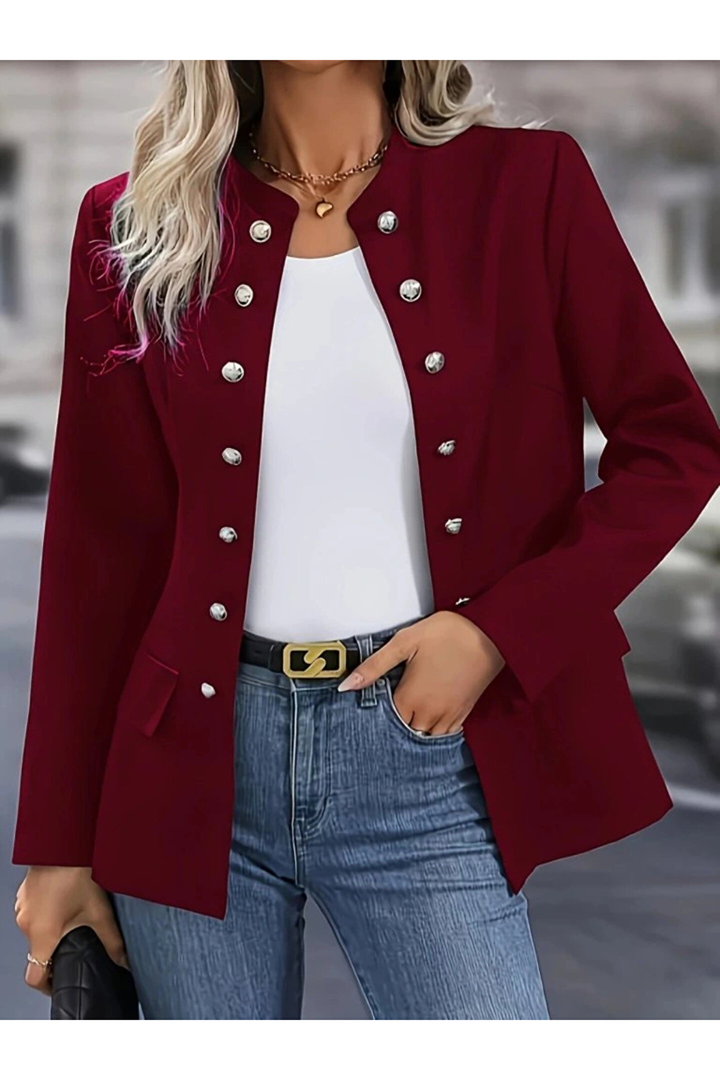Silerra Kadın Uzun Kollu Hakim Yaka önden Düğmeli Kısa Atlas Ceket