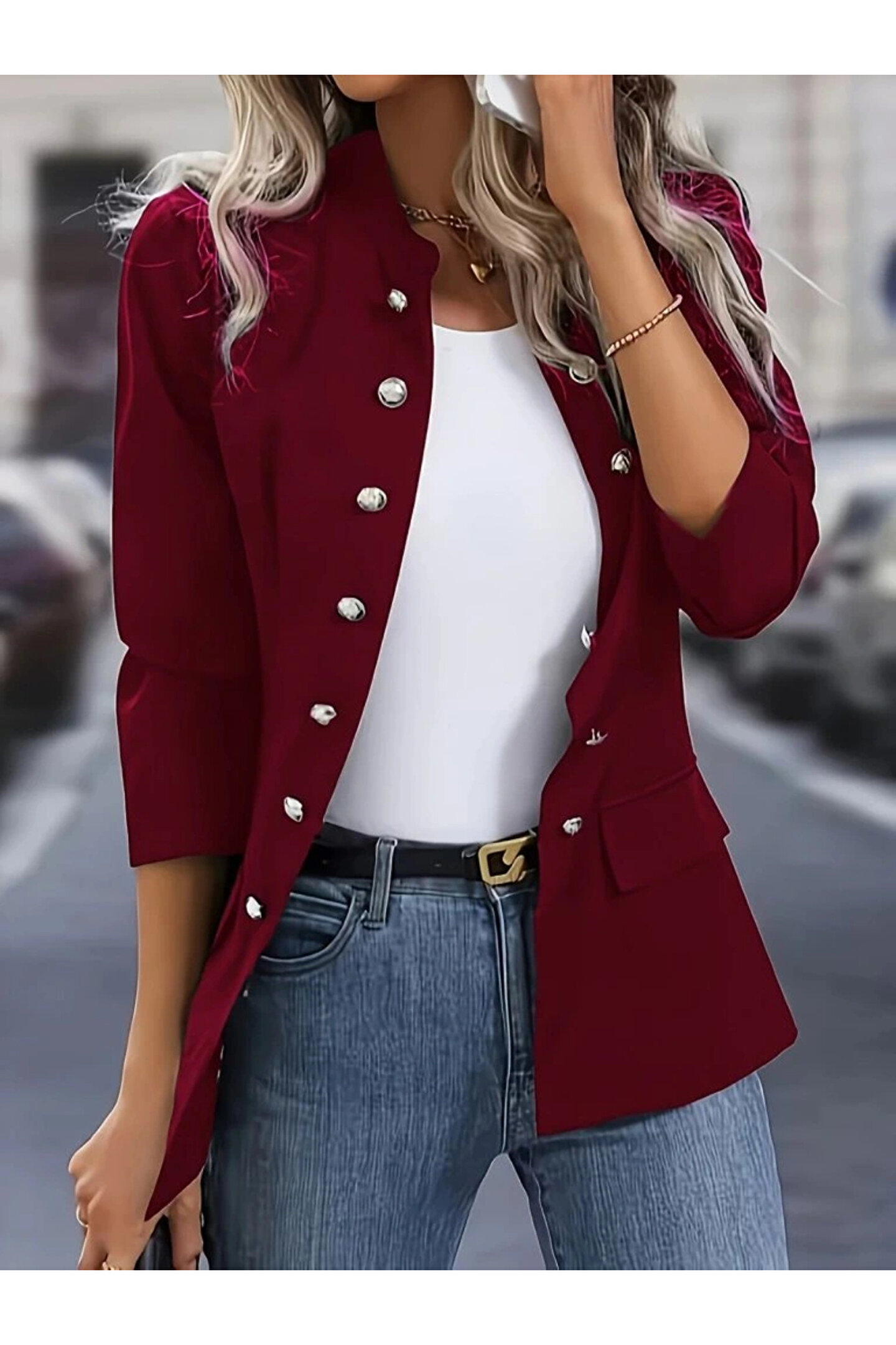 Kadın Uzun Kollu Hakim Yaka önden Düğmeli Kısa Atlas Ceket