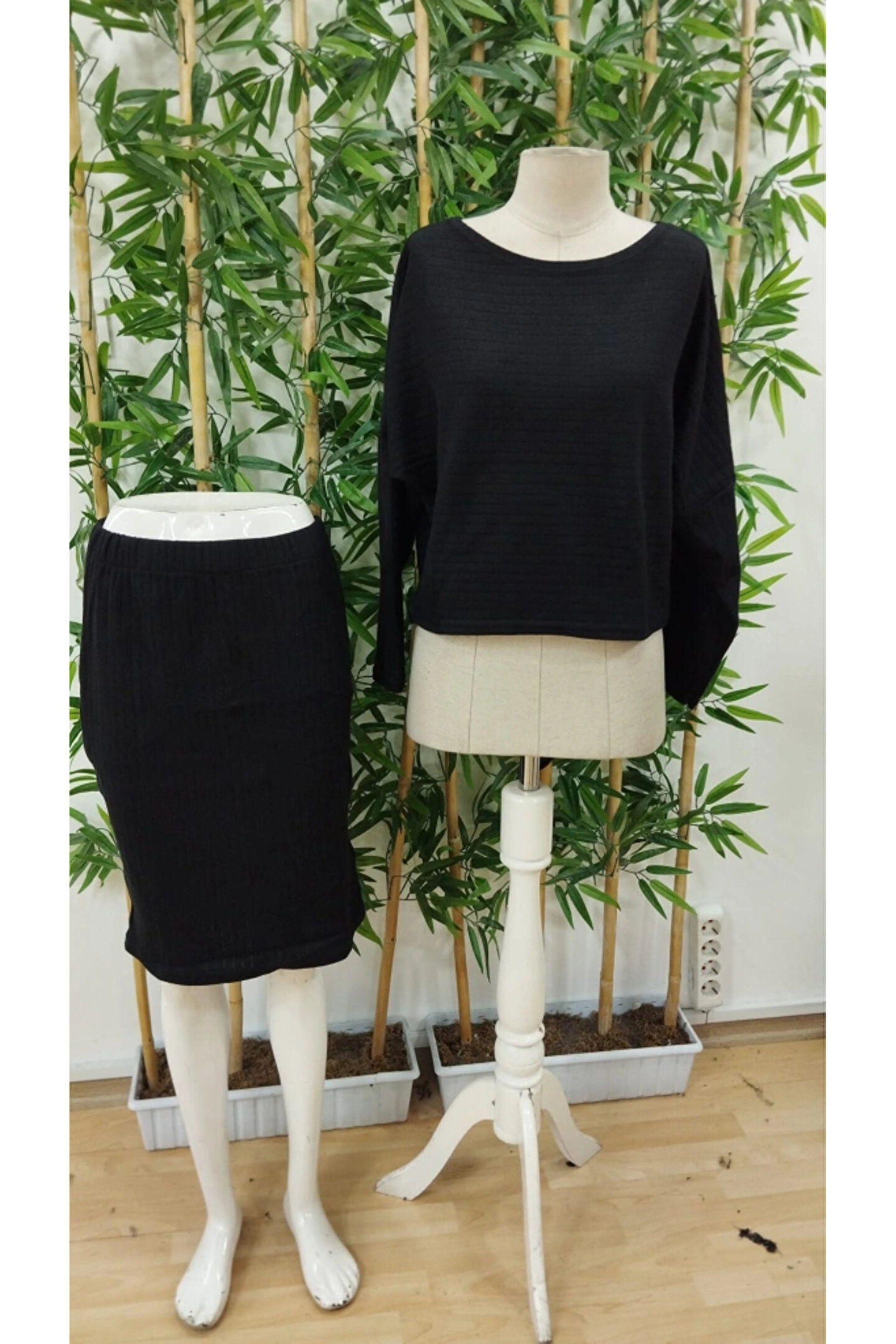 Kadın Uzun Kollu Iki Yanı Açık Yaka Detaylı Bluz Ve Etek şardonlu Kaşkorse Ikili Takım Sıradanlığa Meydan okuyun
