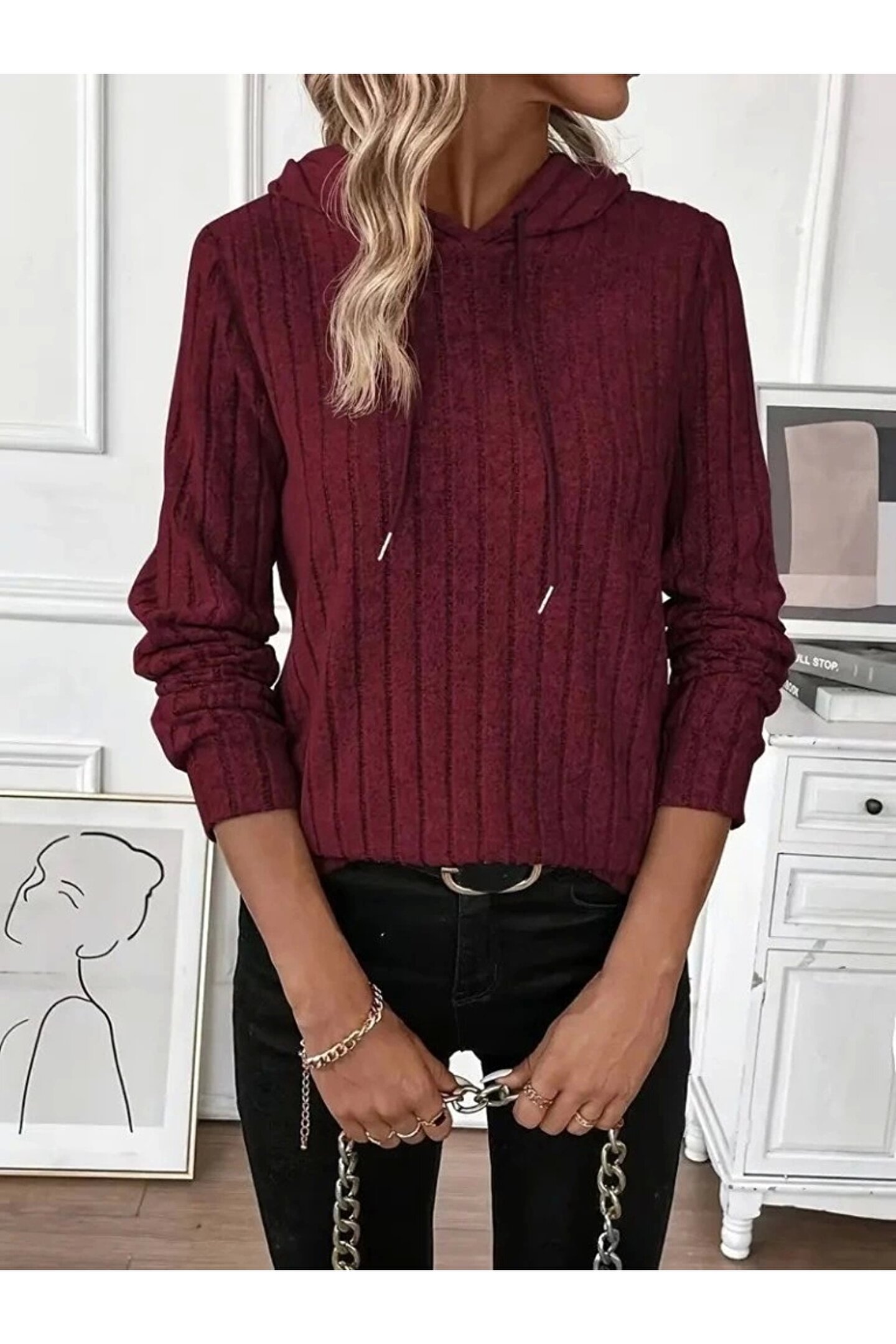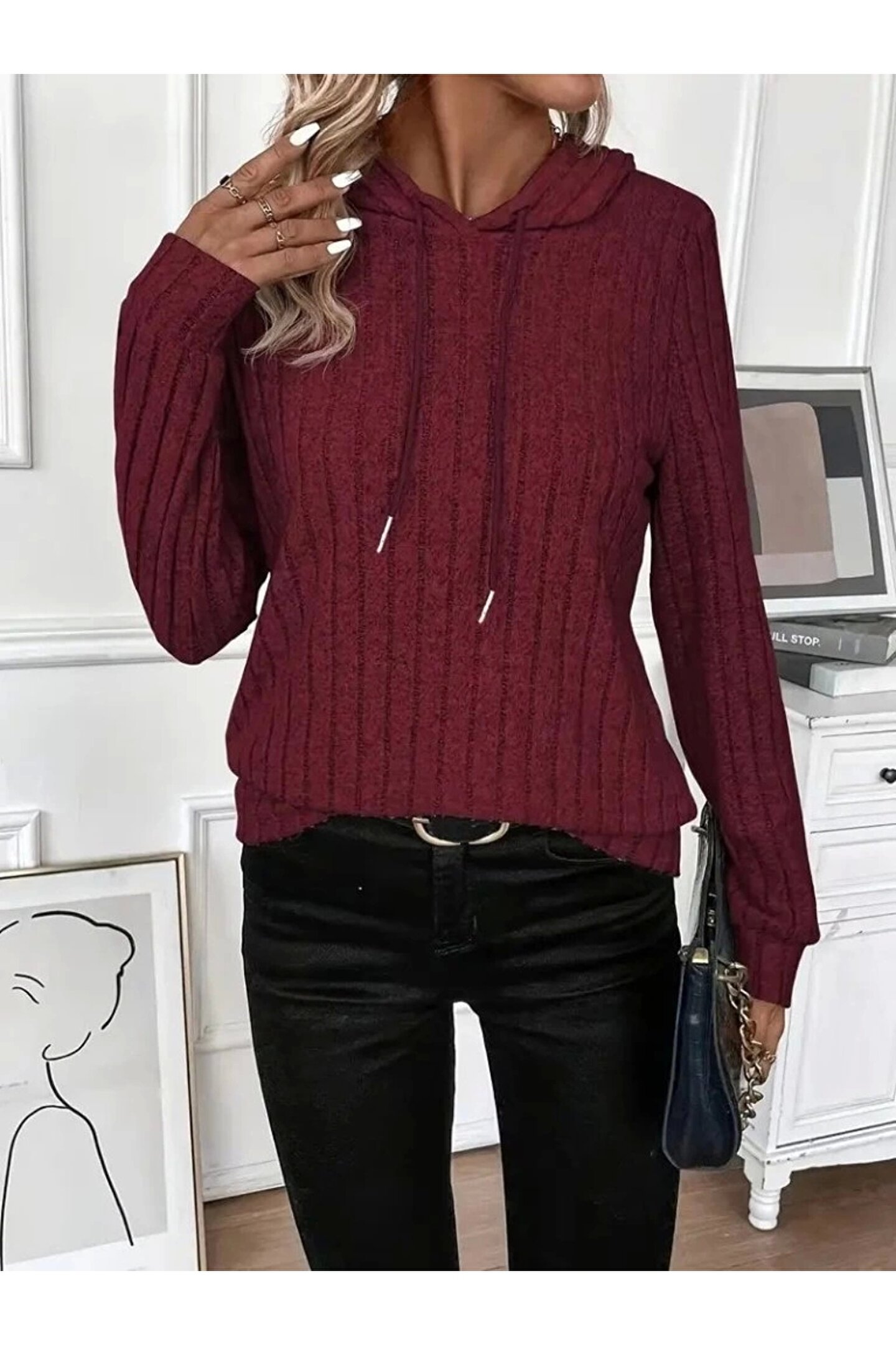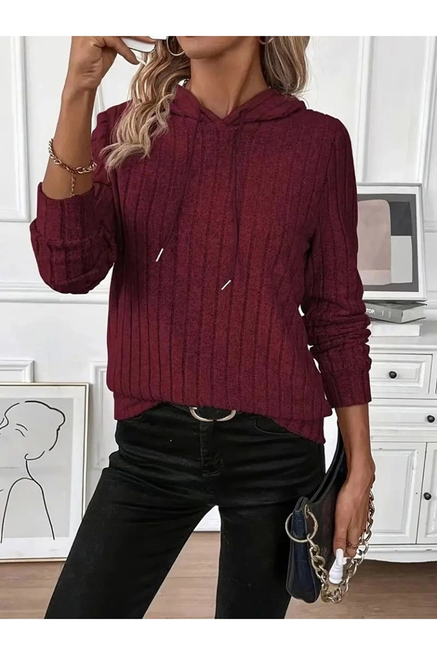 Kadın Uzun Kollu Kapşonlu Bağcıklı şardonlu Kaşkorse Bluz