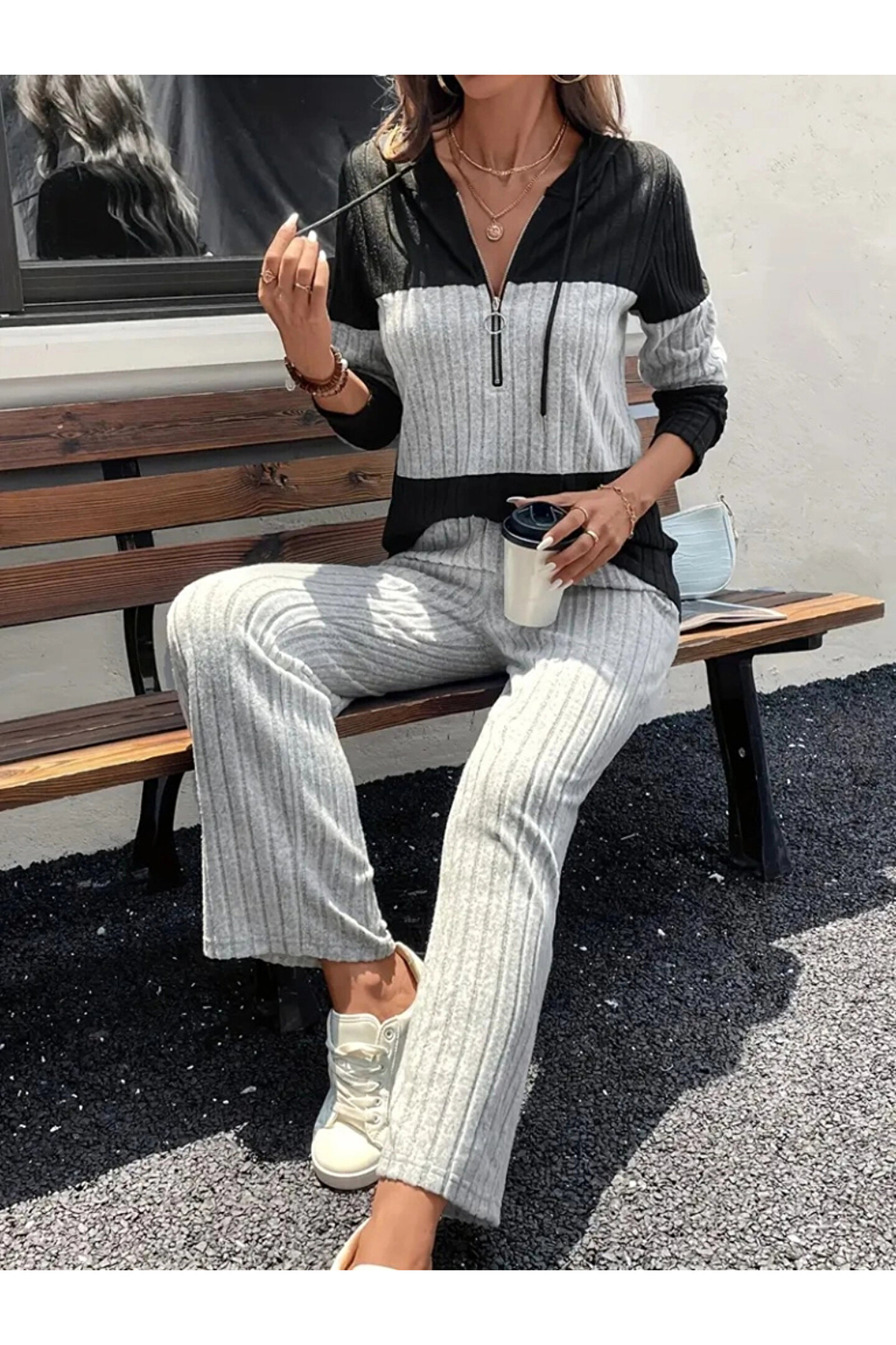 Kadın Uzun Kollu Kapşonlu önden Fermuarlı şardonlu Kaşkorse Bluz Ve Pantolon