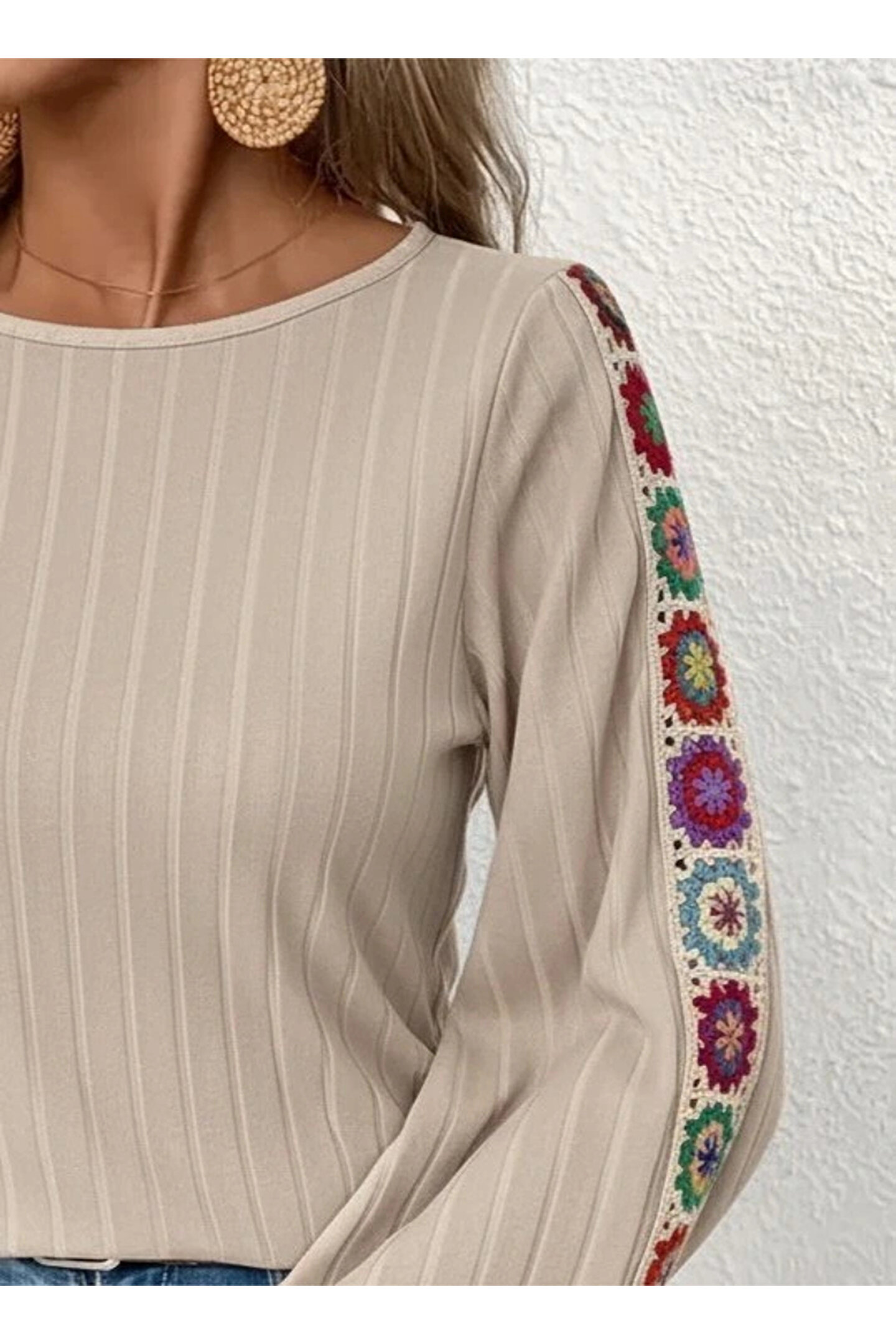 Kadın Uzun Kollu Kayık Yaka şardonlu Kaşkorse Bej Bluz