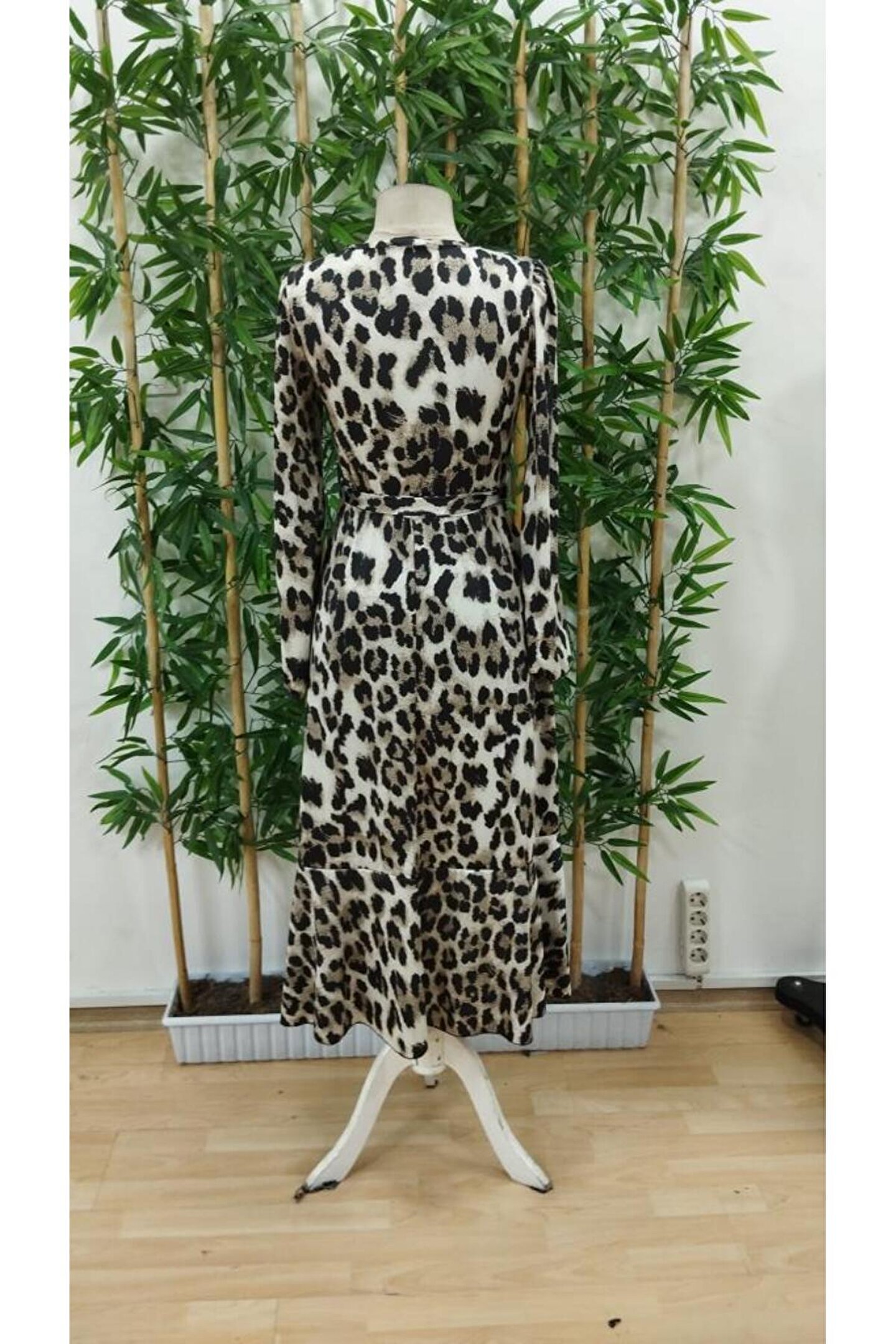 Silerra Kadın Uzun Kollu Kruvaze Yakalı Belden Kuşaklı Leopar