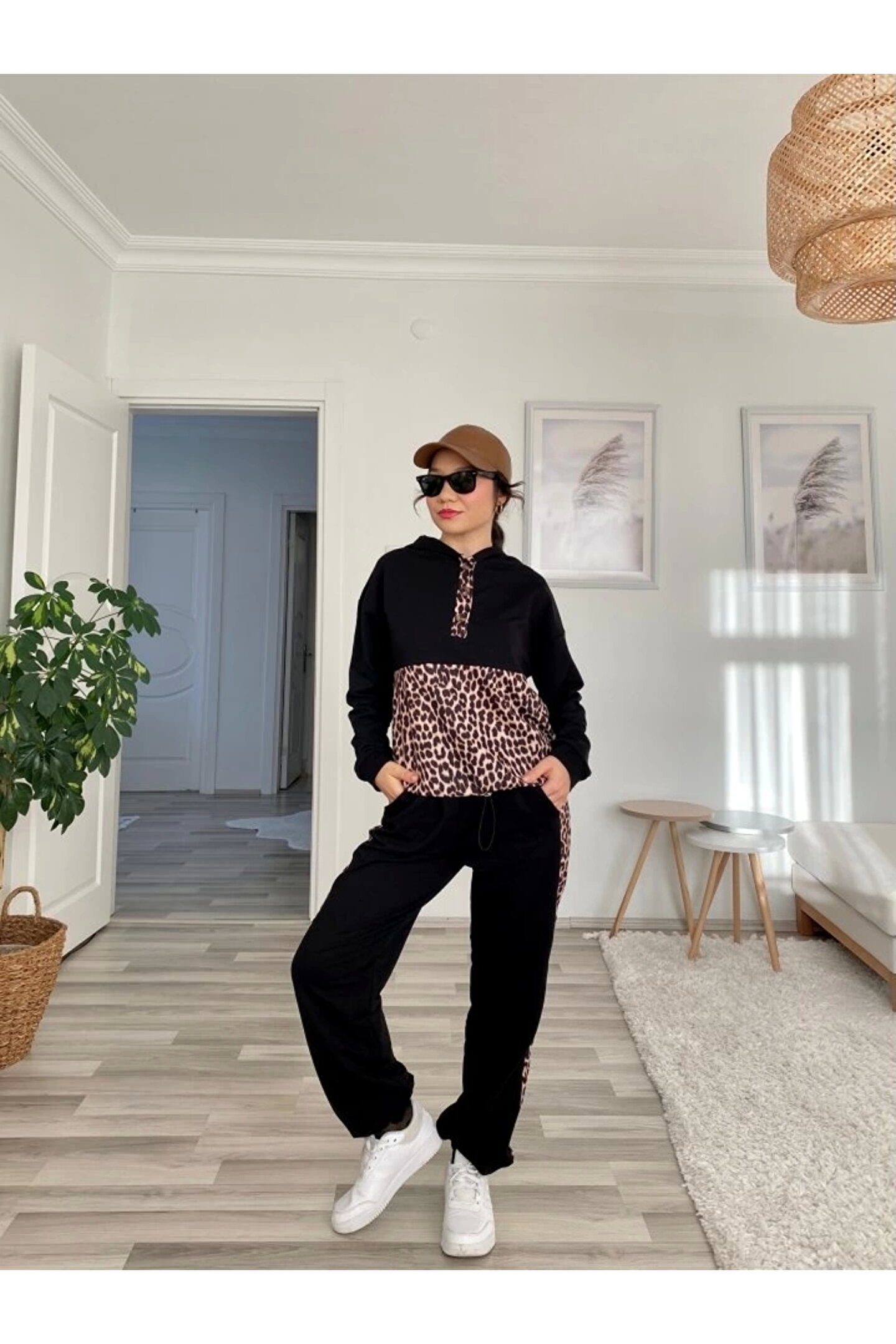 Silerra Kadın Uzun Kollu Leopar Detay weat Ve Yanı Leopar şerit Detay Pantolon Ikili Takım