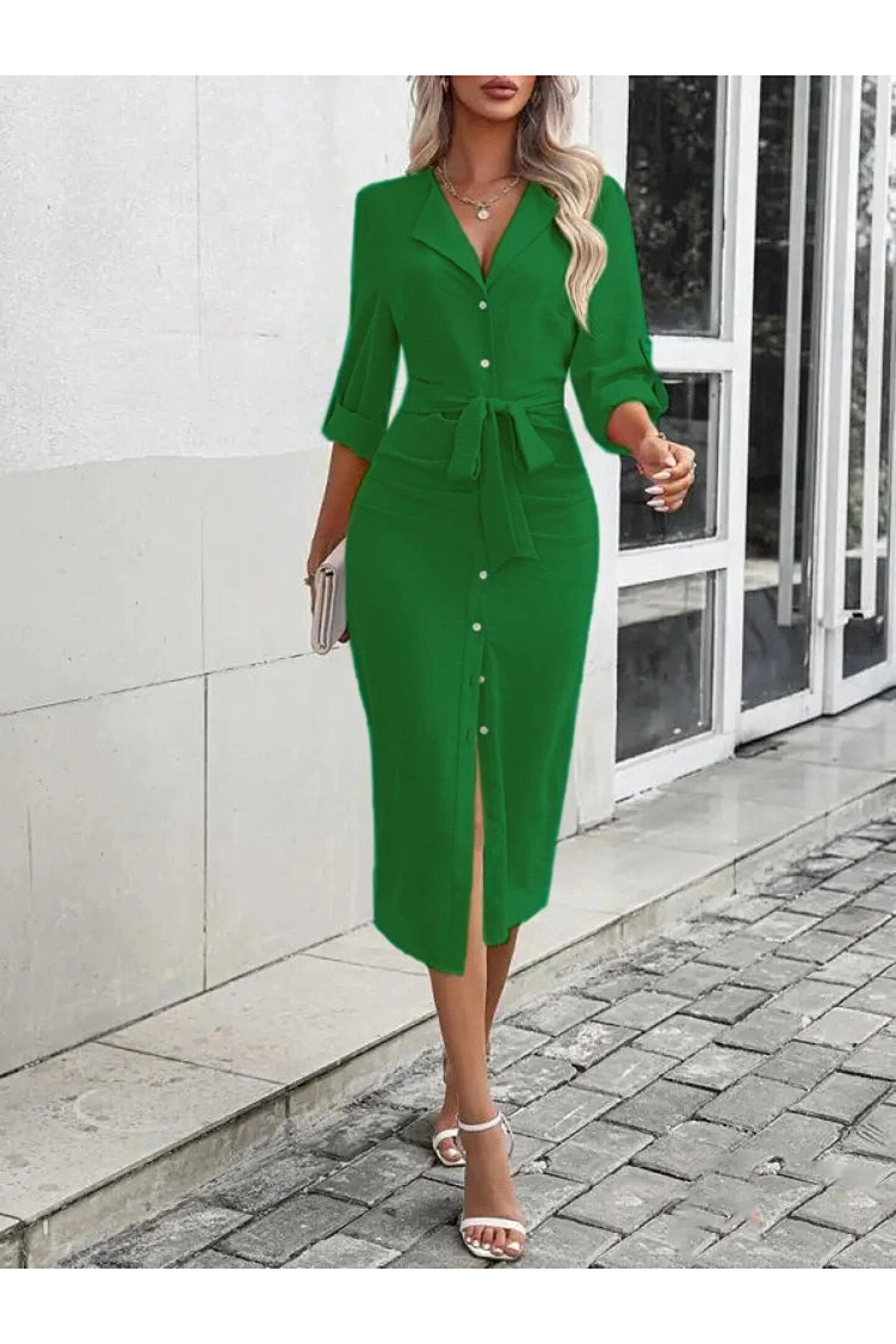 Rahat kullanım sunan comfort kalıbı ile her vücut tipine uyum sağlar ve gün boyu konforlu bir deneyim yaşatır; Aerobin kumaşın hafifliği ve nefes alabilir yapısı sayesinde sıcak yaz günlerinde serinlik hissi verir; Ön kısımdaki düğme detayları ile şık ve modern bir görünüm kazandırırken, belinizi zarifçe vurgular; Belinizi istediğiniz gibi ayarlayabileceğiniz kuşak detayı, kişisel zevkinize göre özelleştirilebilir bir stil olanağı tanır; Standart boyu ile farklı boy uzunluklarına sahip kullanıcılar için idealdir; hem günlük kullanım hem de özel günler için uygundur; Dokuma kumaş tipi, dayanıklılığı ve kaliteli dokusuyla uzun süreli kullanım vaat eder;