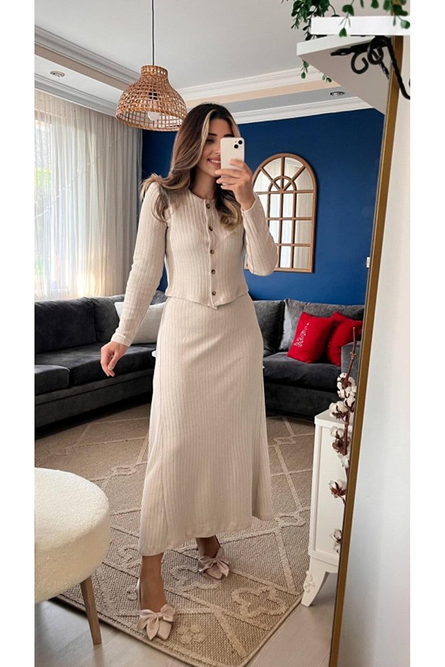 Modelin Ölçüleri: Boy:165, Kg:55, Göğüs:90, Bel:72, Kalça: 100 Modelin üzerindeki ürün M/38 bedendir Trendleri belirleyen kadın giyim markası velmorafashion'a hoşgeldiniz! VelmoraFashion, kadınların tarzlarını ifade etmelerine ve güçlü bir duruş sergilemelerine olanak tanıyan bir markadır.; 2018 yılından bu yana sektörde varlığını sürdüren firmamız, yenilikçi tasarımları ve kaliteli ürünleriyle dikkat çekiyor.; VelmoraFashion olarak amacımız, her kadının kendine özgü tarzını yansıtabileceği, güvenilir ve şık giyim seçenekleri sunmaktır.; Koleksiyonlarımızda her zevke hitap eden parçaları bulabilirsiniz.; Günlük hayatta rahatlıkla tercih edilebilecek şık elbiselerden iş görüşmelerinde stilinizi tamamlayacak takım elbiselere, spor giyimden abiye modellere kadar geniş bir ürün yelpazemiz bulunmaktadır.; Tasarımlarımızı oluştururken moda trendlerini yakından takip ediyor, farklı tarzlara ve bedenlere uygun seçenekler sunmaya özen gösteriyoruz.; Aynı zamanda kalite ve dayanıklılık da önceliklerimiz arasındadır.; Her parça, titizlikle seçilen kumaşlar ve dikkatle işlenen detaylarla özenle üretilmektedir.; Müşteri memnuniyeti bizim için en önemli önceliktir.; Profesyonel müşteri hizmetleri ekibimiz, her adımda size yardımcı olmak ve alışveriş deneyiminizi en üst düzeye çıkarmak için buradadır.; Siz değerli müşterilerimizin geri bildirimleri, bizi daha da ileriye taşımak için önemli bir kaynaktır.; Velmora Fashion olarak, sadece giyimde değil, aynı zamanda kadınların güçlendirilmesi ve kendilerini ifade etmeleri konusunda da bir misyon taşıyoruz.; Her kadının kendi tarzını keşfetmesine ve kendine güvenle adım atmasına yardımcı olmak için buradayız.; VELMORAFAShion'da her detayı düşünülmüş, şıklığı ve rahatlığı bir arada sunan parçalarla dolu koleksiyonlarımızı keşfetmek için sizi mağazamıza bekliyoruz.; Siz de ailemize katılın ve tarzınızı keşfedin!