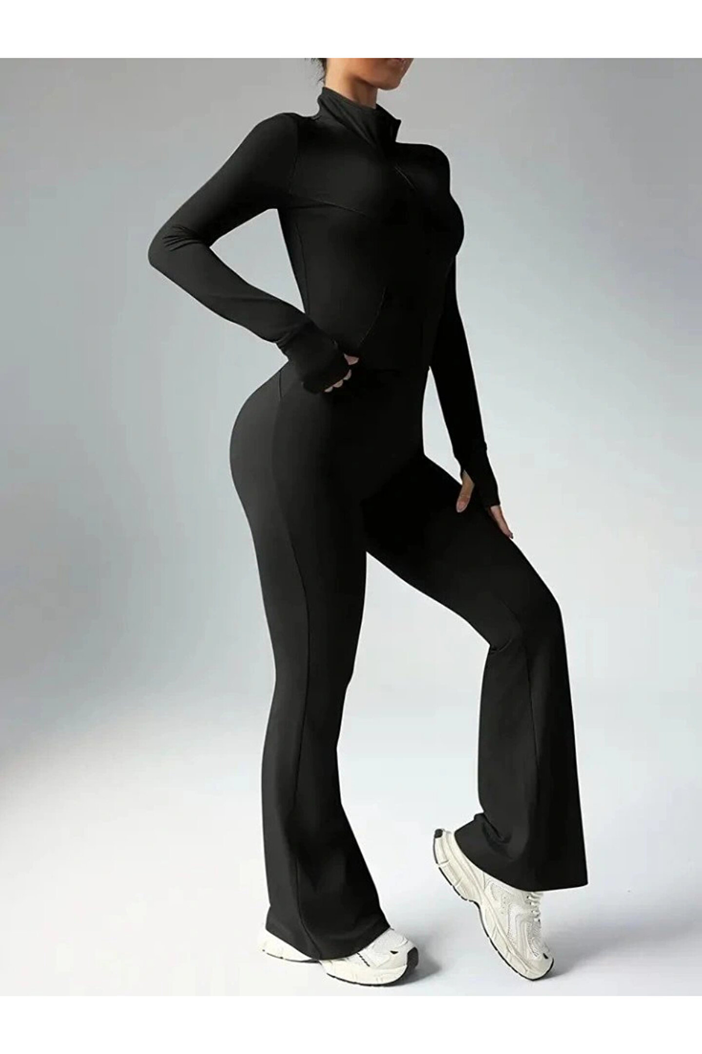 Kadın Uzun Kollu önden Fermuarlı Kısa Dalgıç Bluz Ve Pantolon Ikili Takım