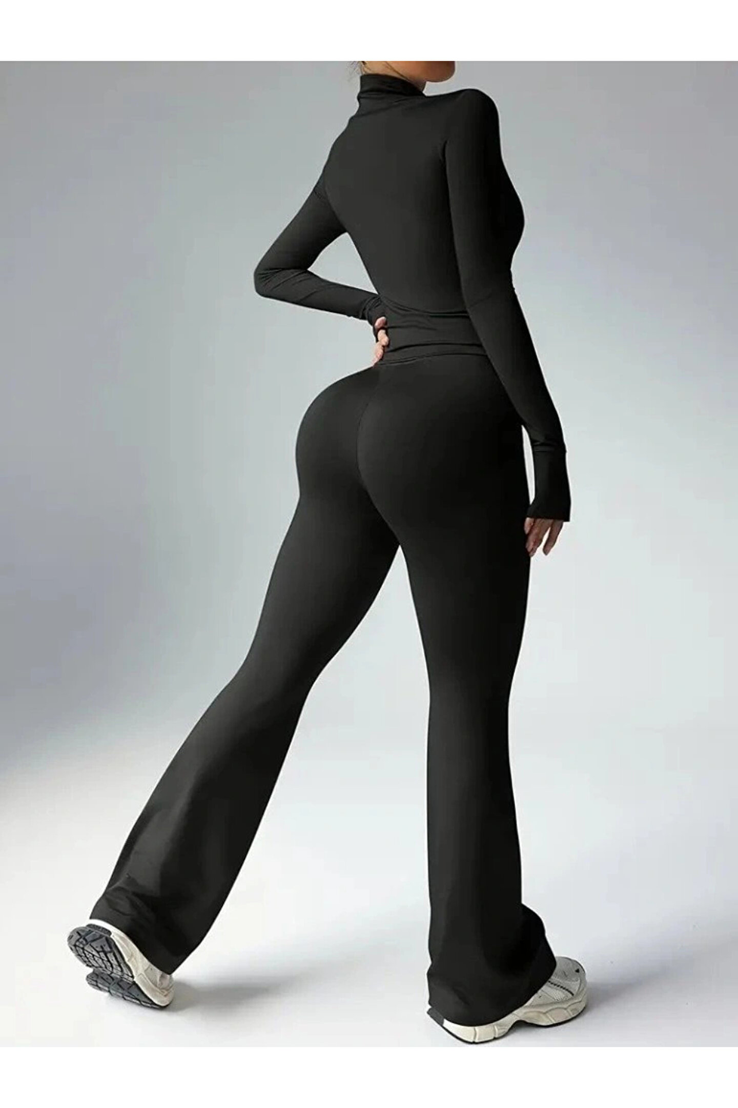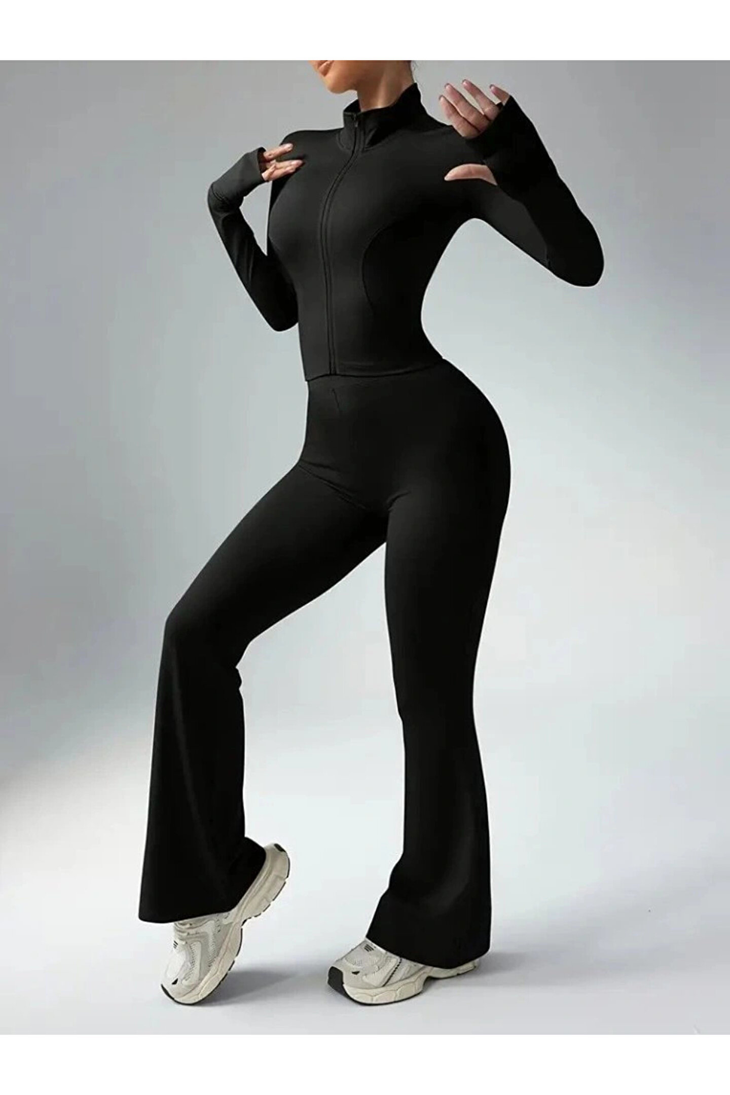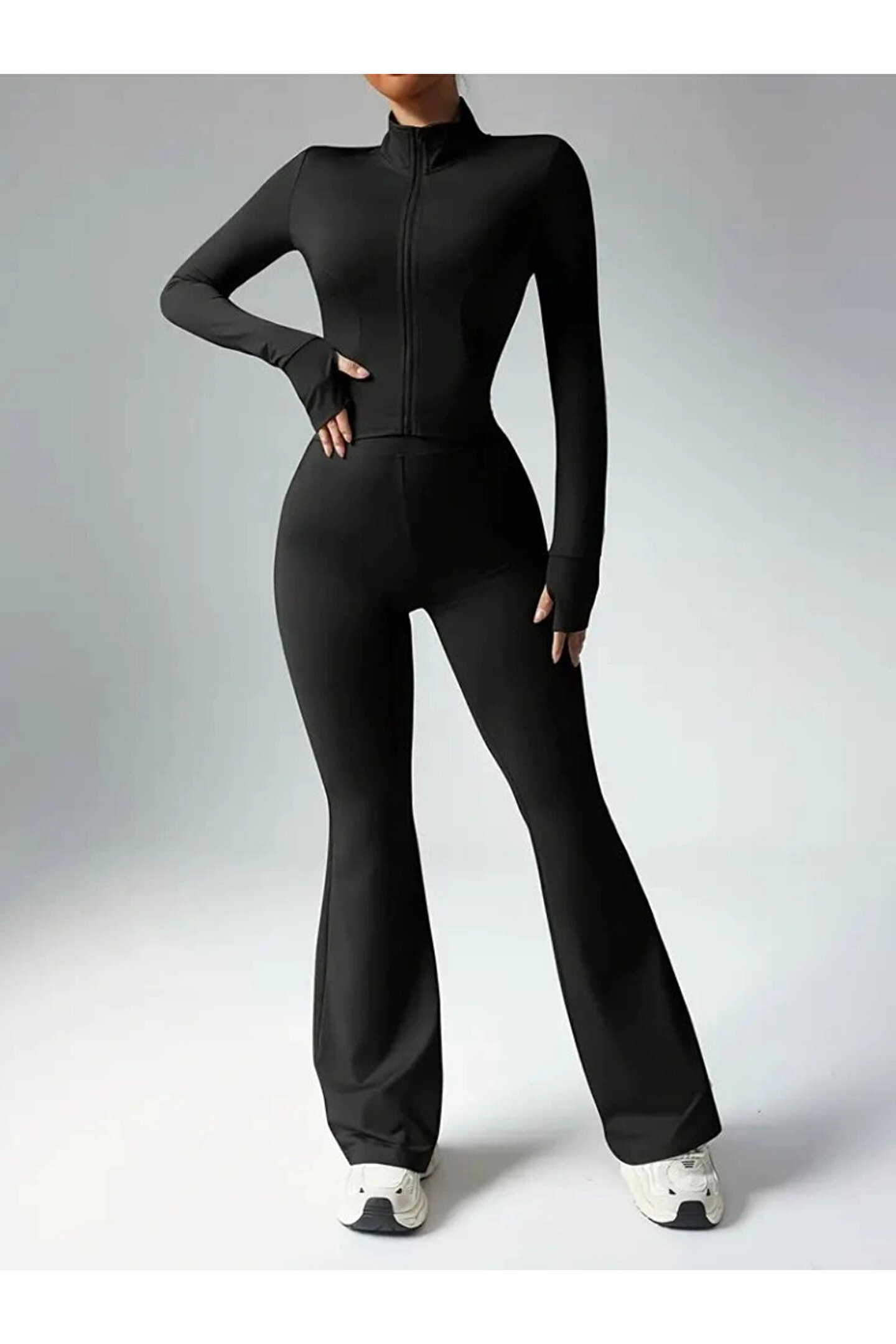 Kadın Uzun Kollu önden Fermuarlı Kısa Dalgıç Bluz Ve Pantolon Ikili Takım