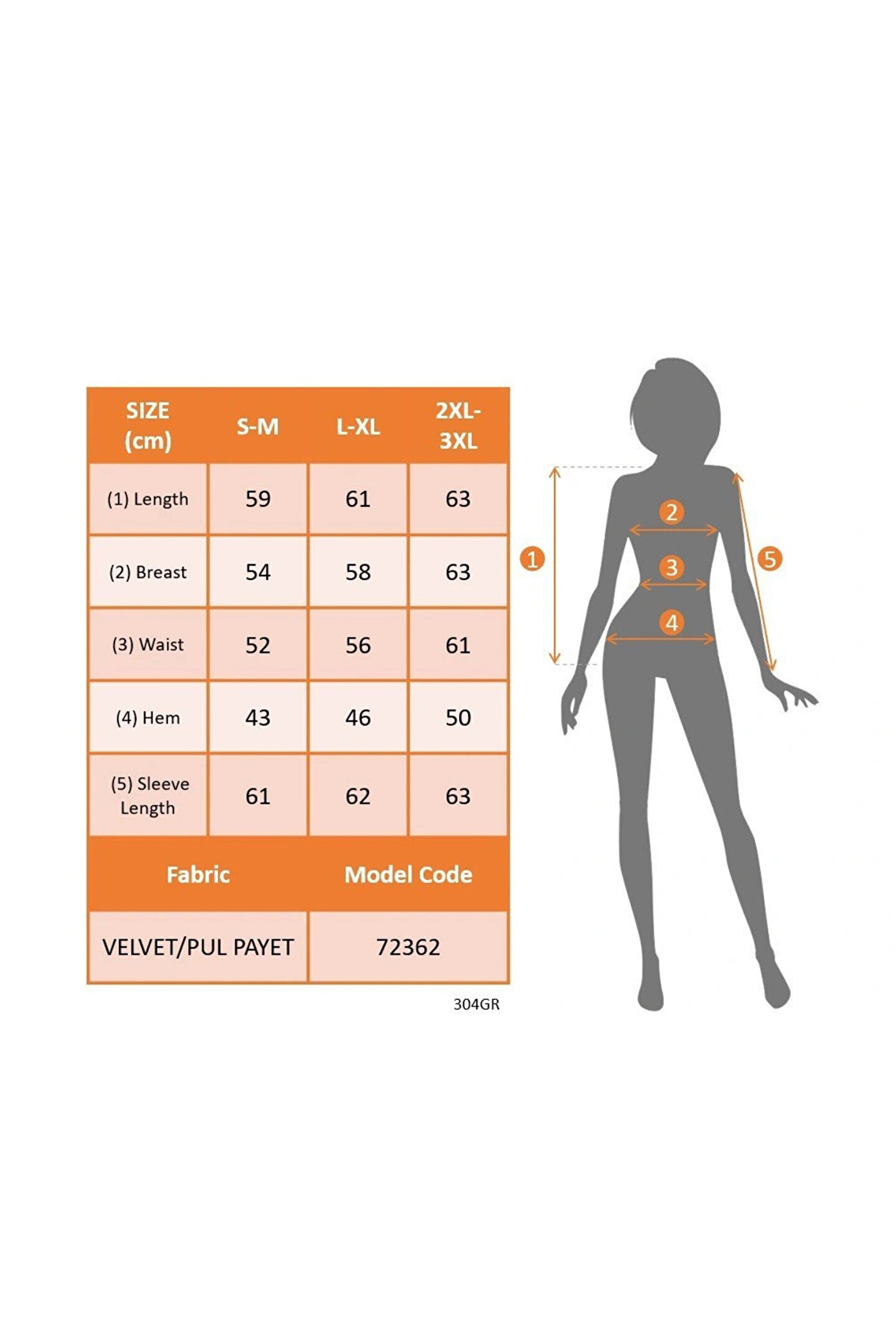 Kadın Uzun Kollu önü Açık Fermuarlı Pulpayetli Kadife Ceket
