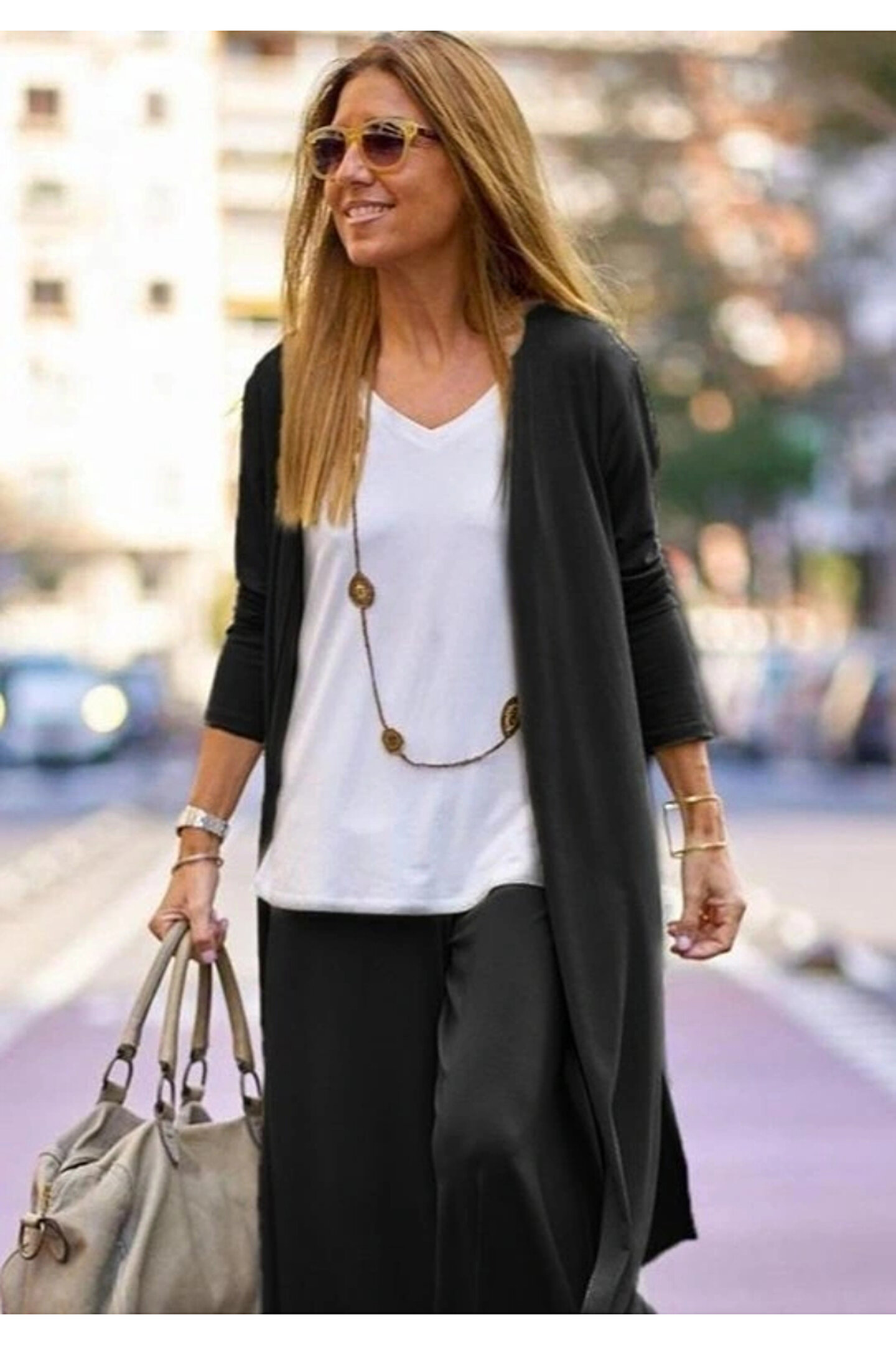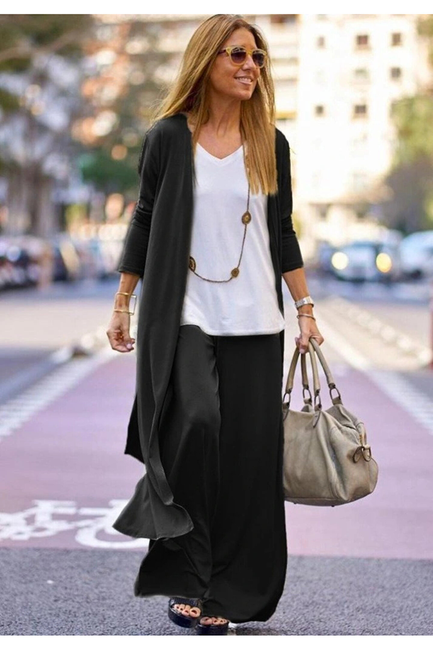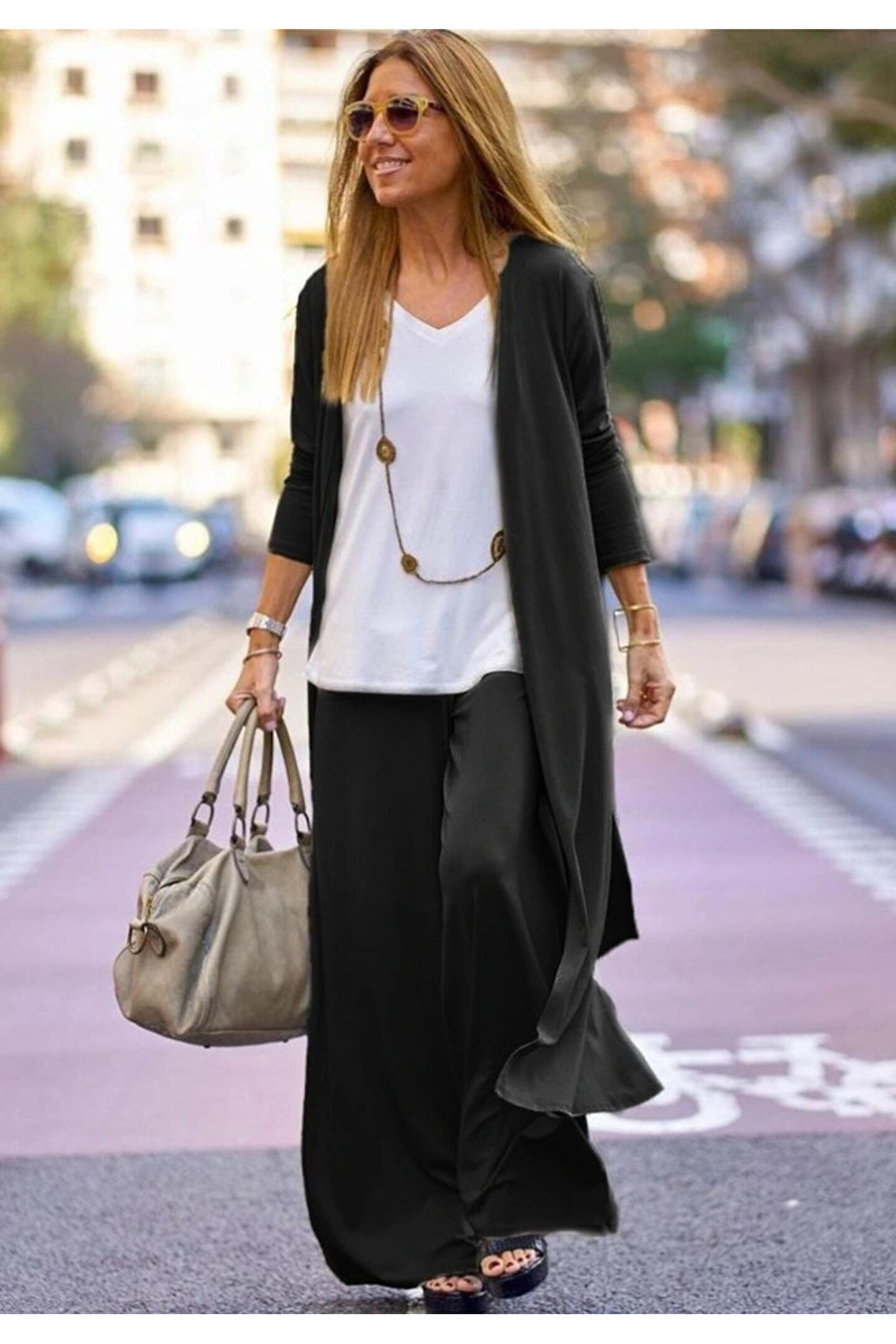 Kadın Uzun Kollu önü Açık Viskon Ceket Ve Pantolon Ikili Takım