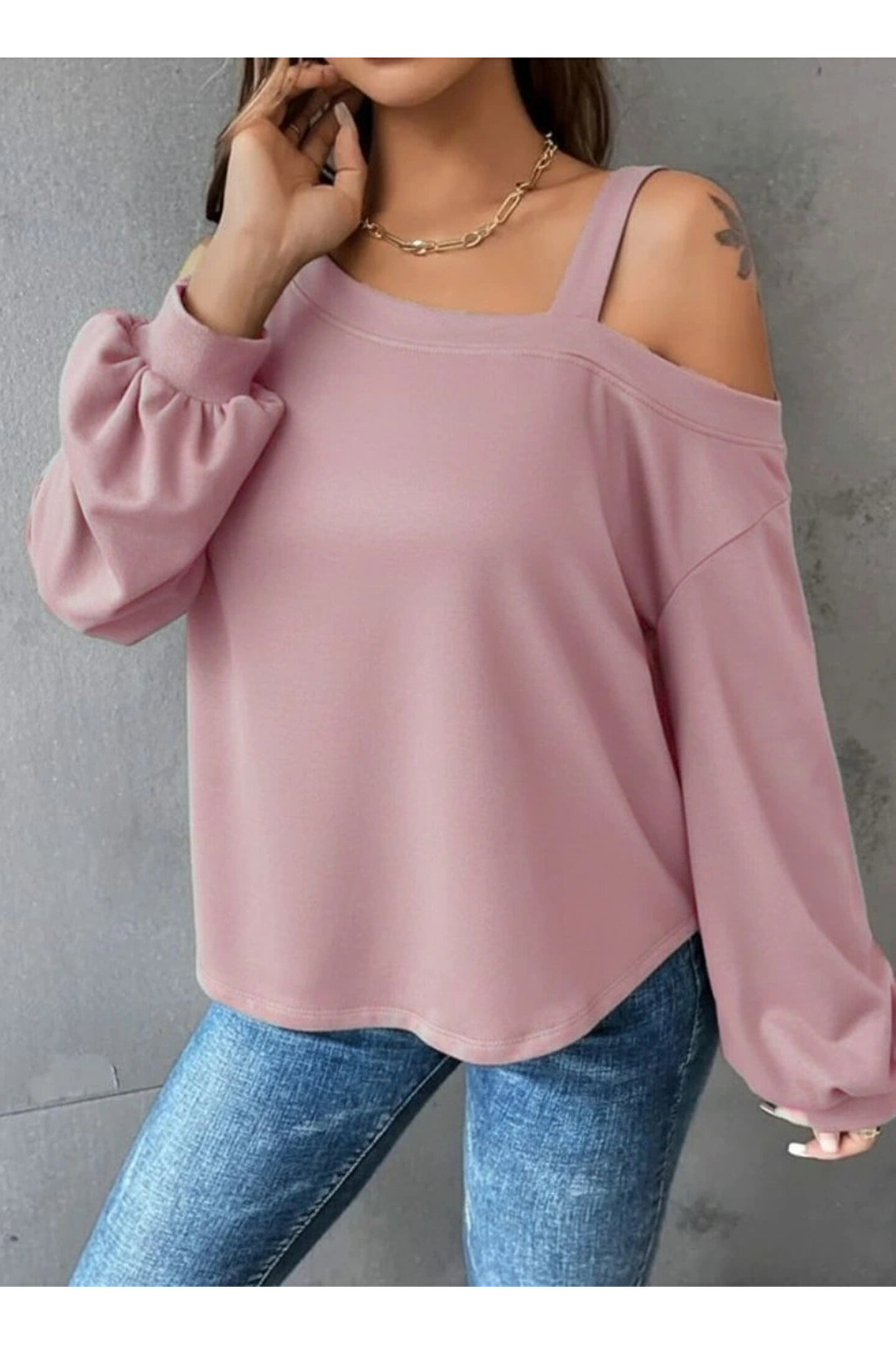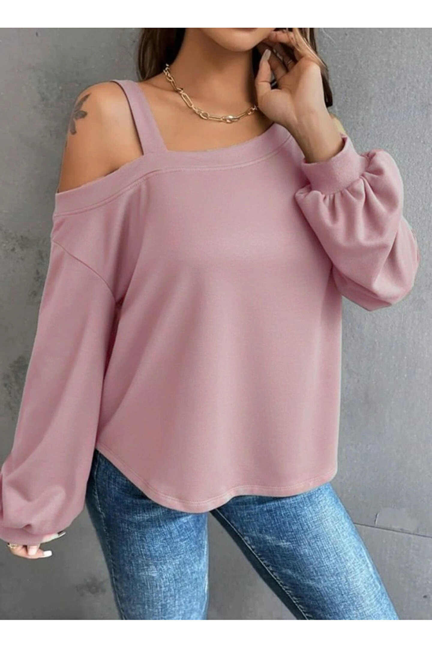 Kadın Uzun Kollu Tek Omuz Askı Detay Salaş Dalgıç Bluz