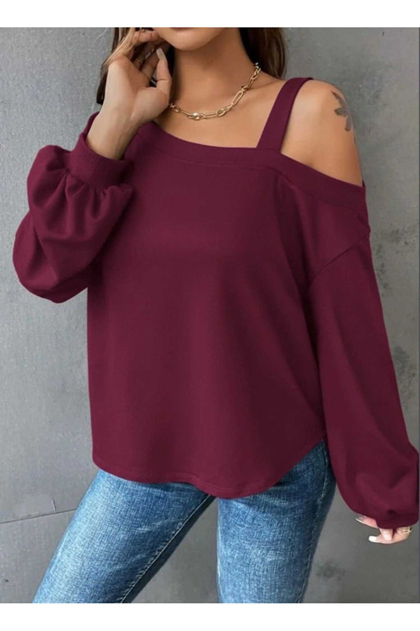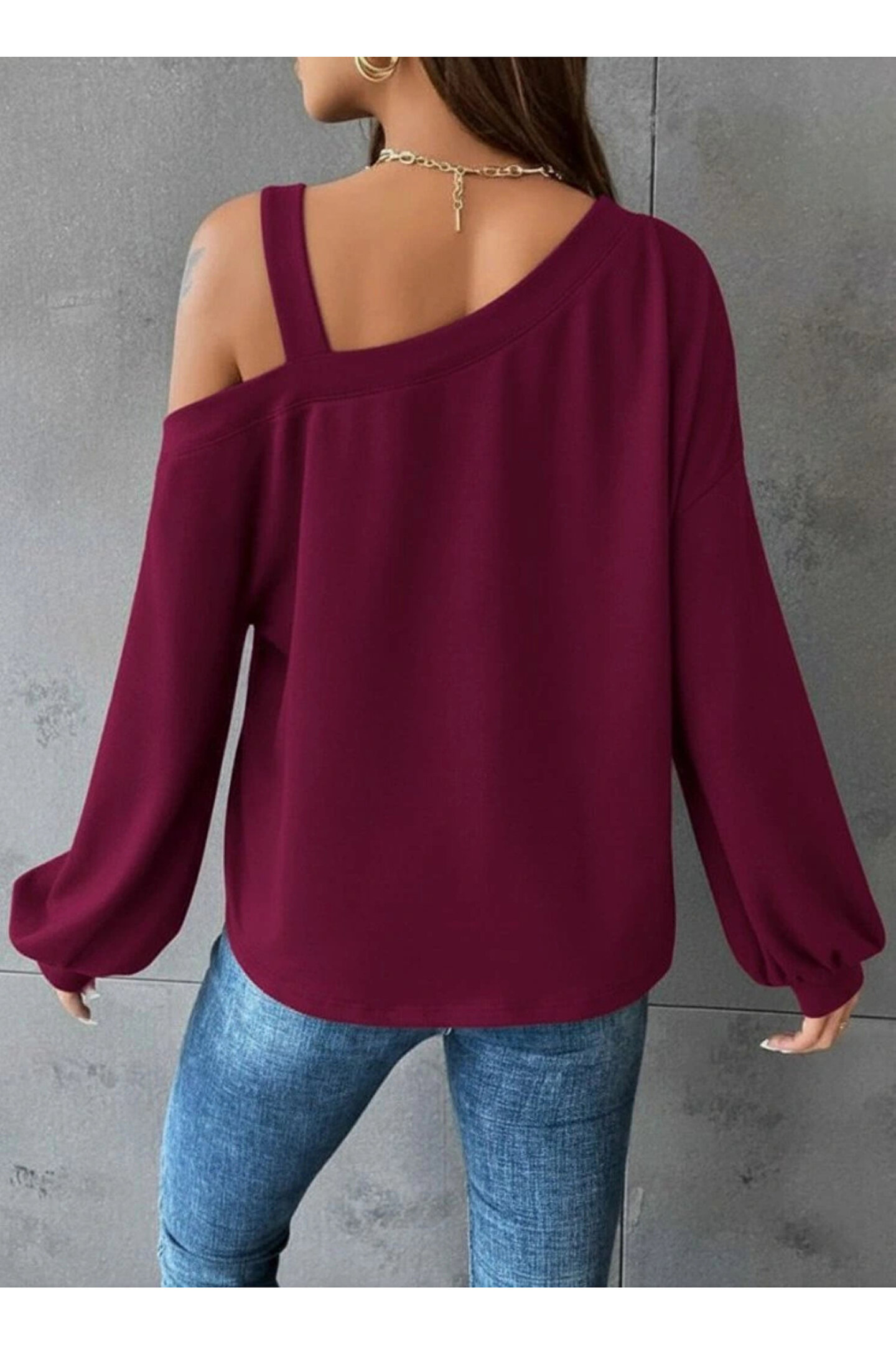 Kadın Uzun Kollu Tek Omuz Askı Detay Salaş Dalgıç Bluz