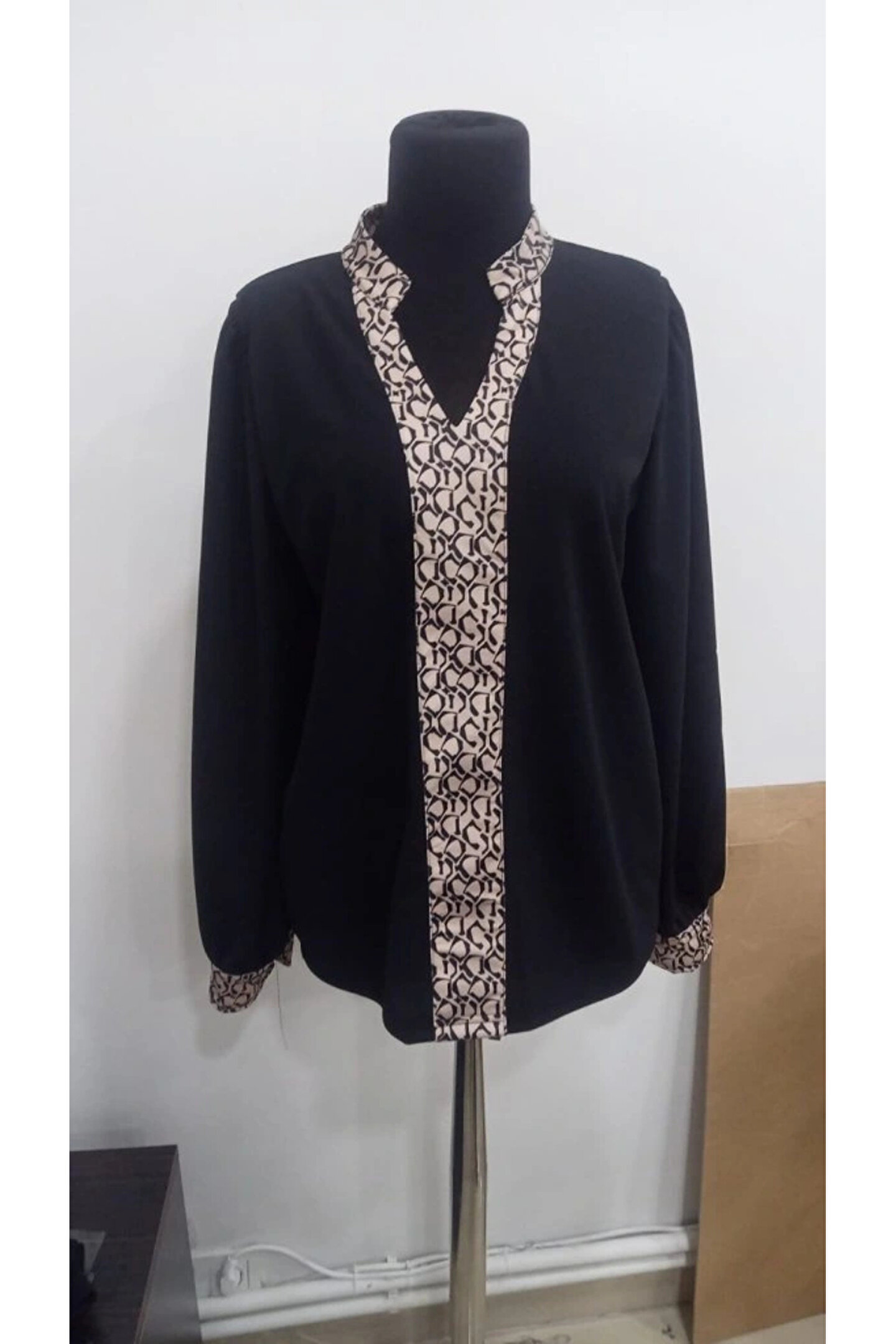 Kadın Uzun Kollu V Hakim Yakalı Desenli Ithal Krep Bluz