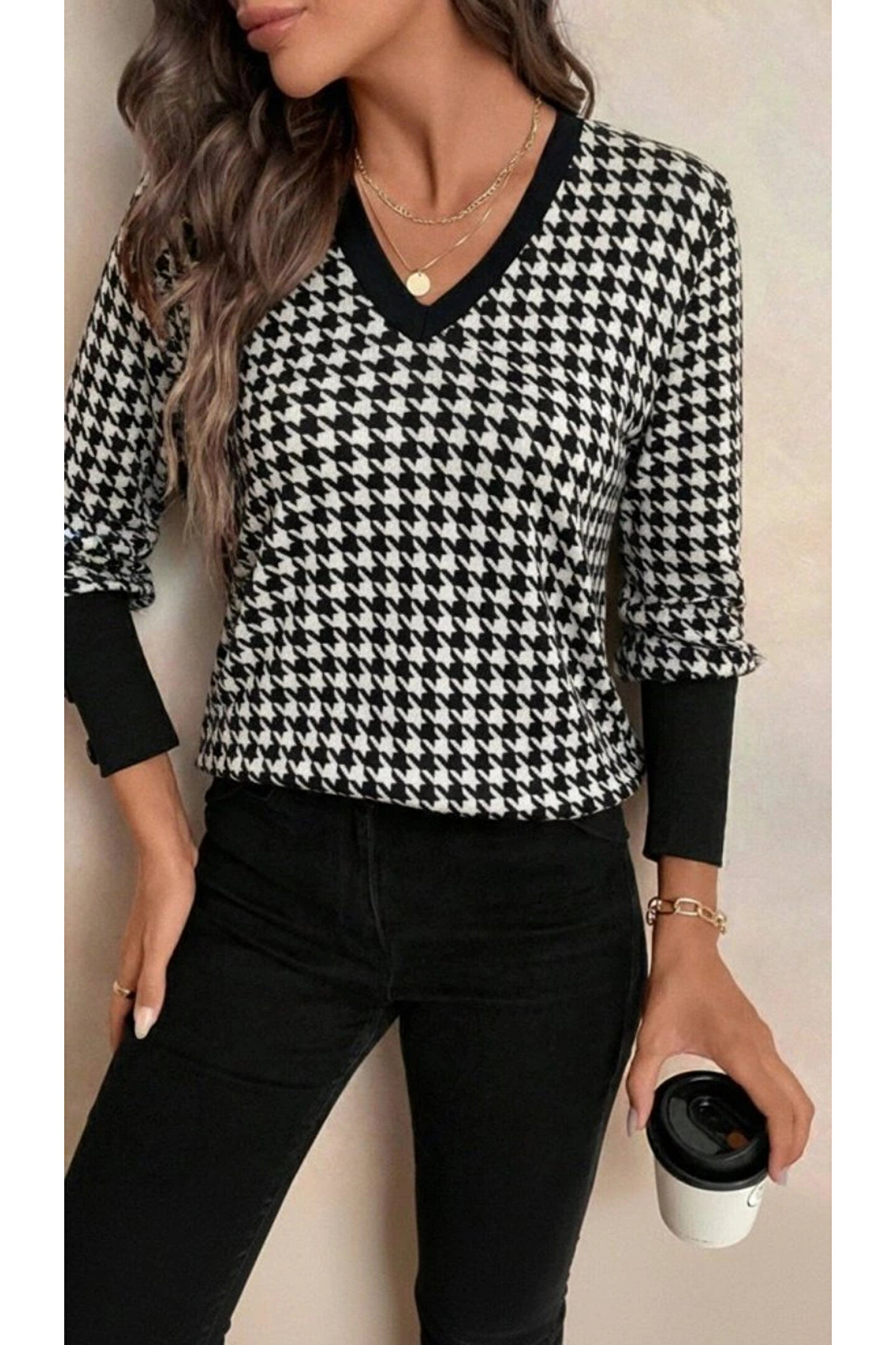 Kadın Uzun Kollu V Yakalı Desenli Süprem Bluz