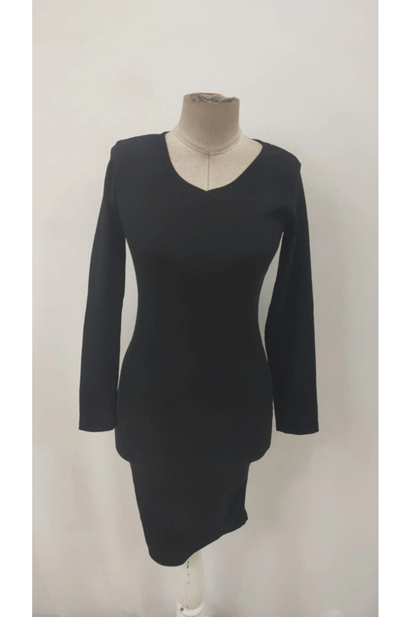 Kadın Uzun Kollu V Yakalı Kısa Kaşkorse Elbise