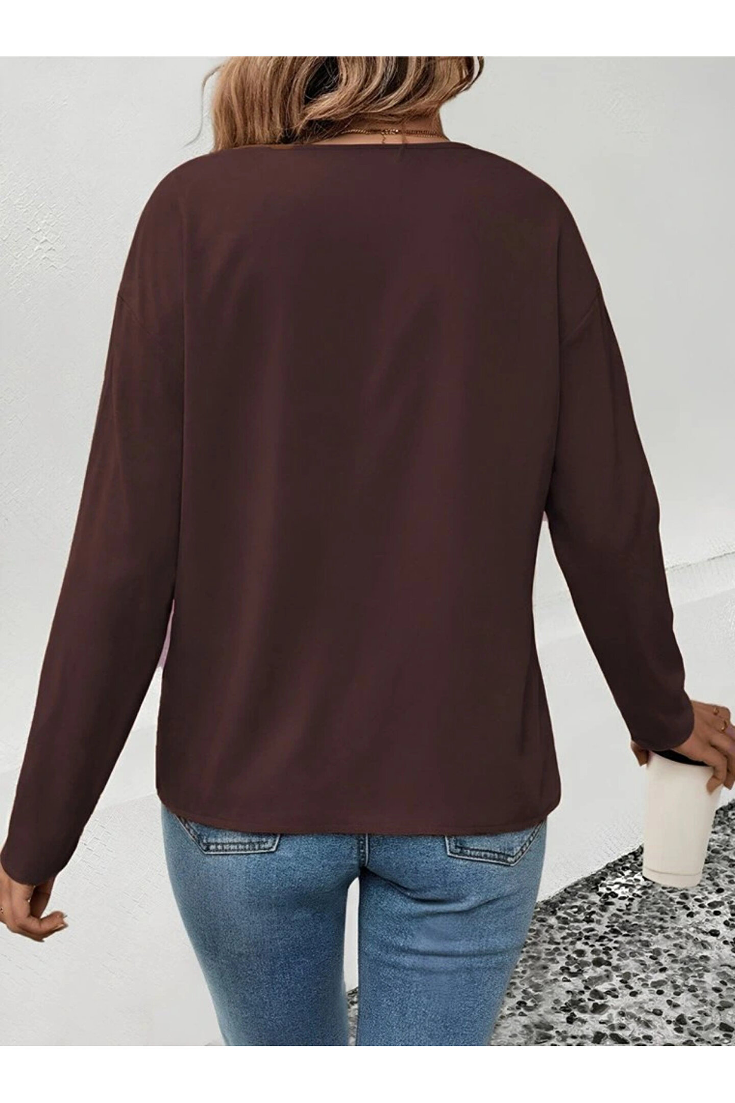 Silerra Kadın Uzun Kollu V Yakalı Leopar Detaylı Viskon Iki Iplik Bluz