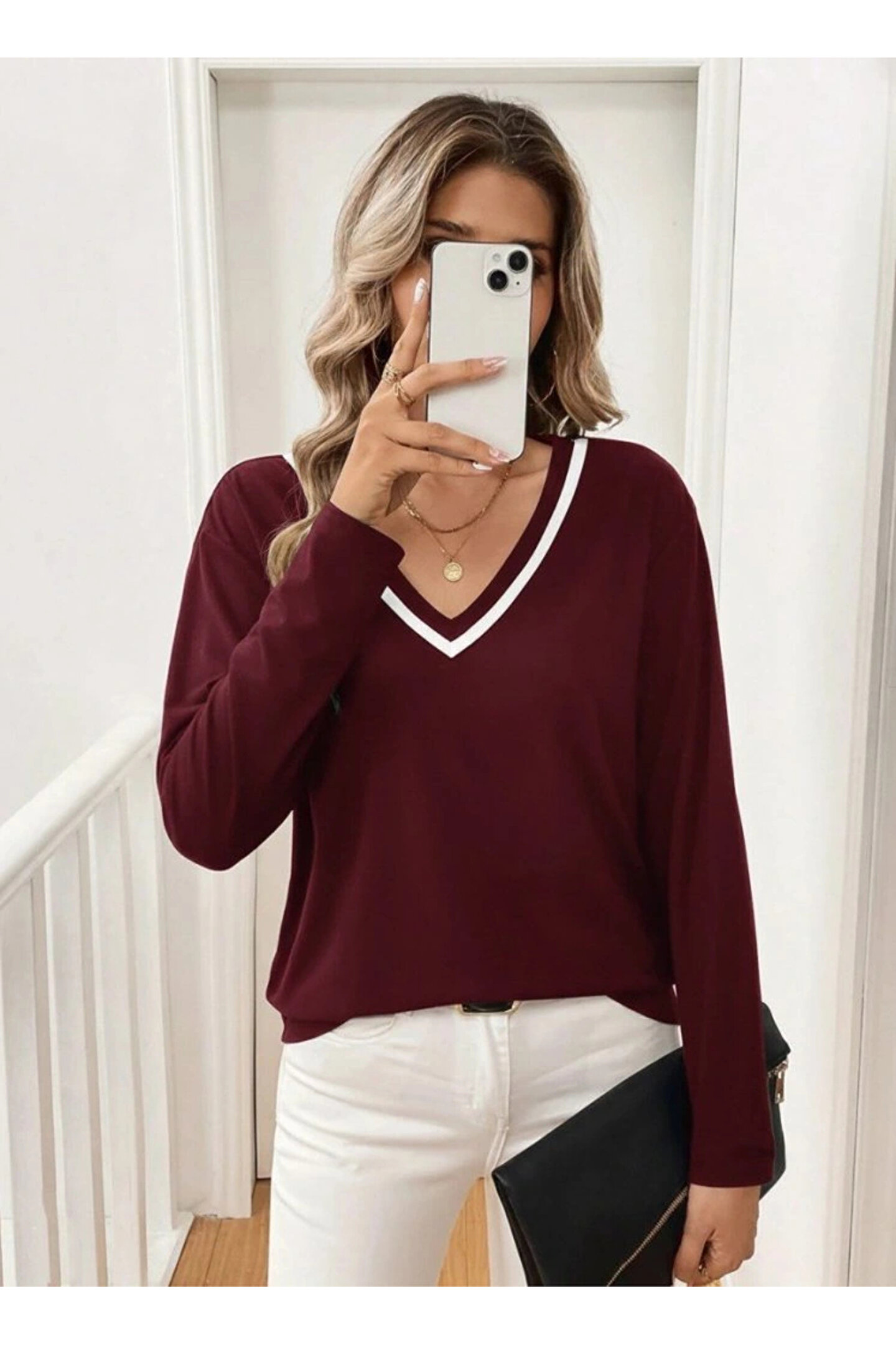 Kadın Uzun Kollu V Yakalı Viskon Iki Iplik Bluz