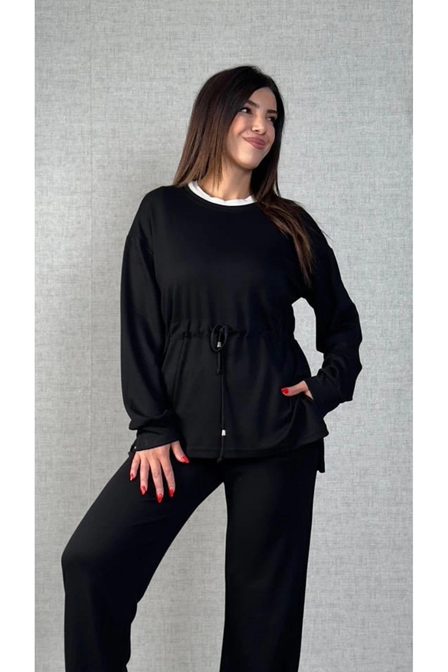 Kadın Uzun Kollu Yaka Ve Büzgü Detay Tunik Ve Pantolon Ikili Takım