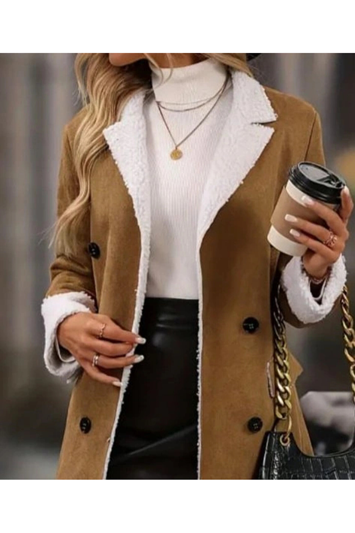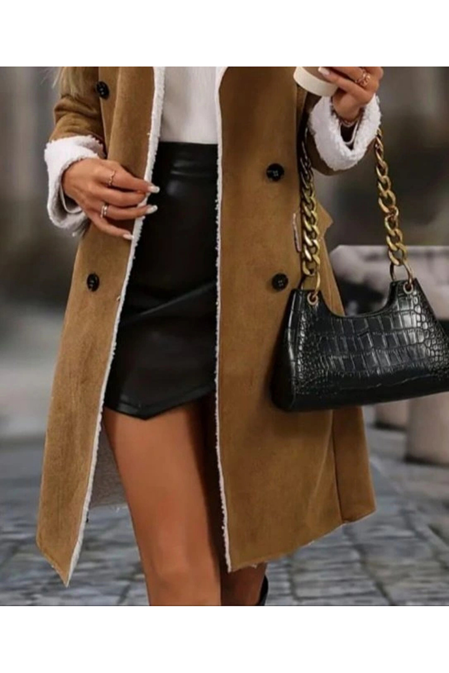 Kadın Uzun Kollu Yakalı Düğmeli Süet Mini Manto