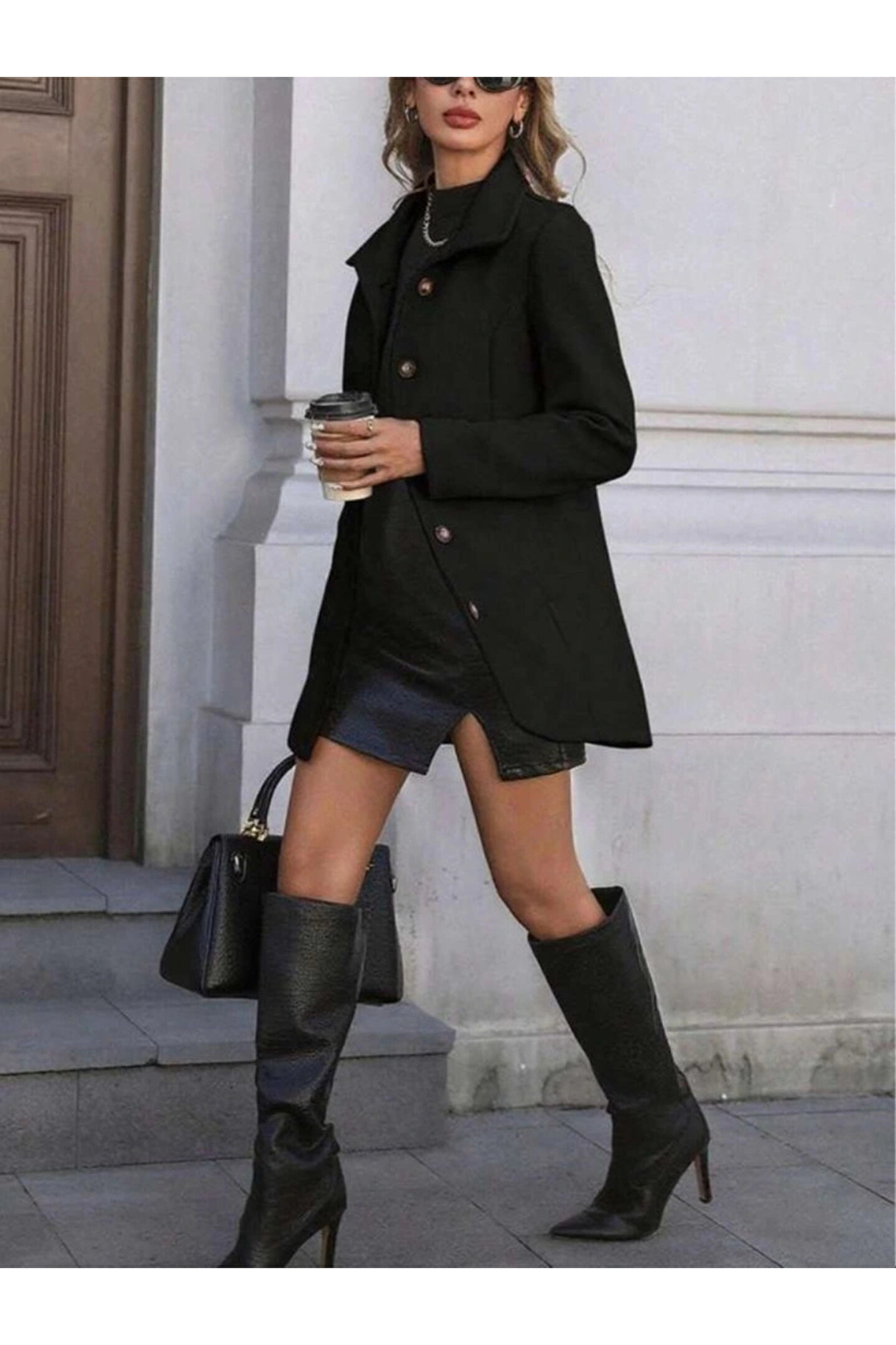 Silerra Kadın Uzun Kollu Yakalı önden Düğmeli Astarsız Ithal Kaşe Kaban