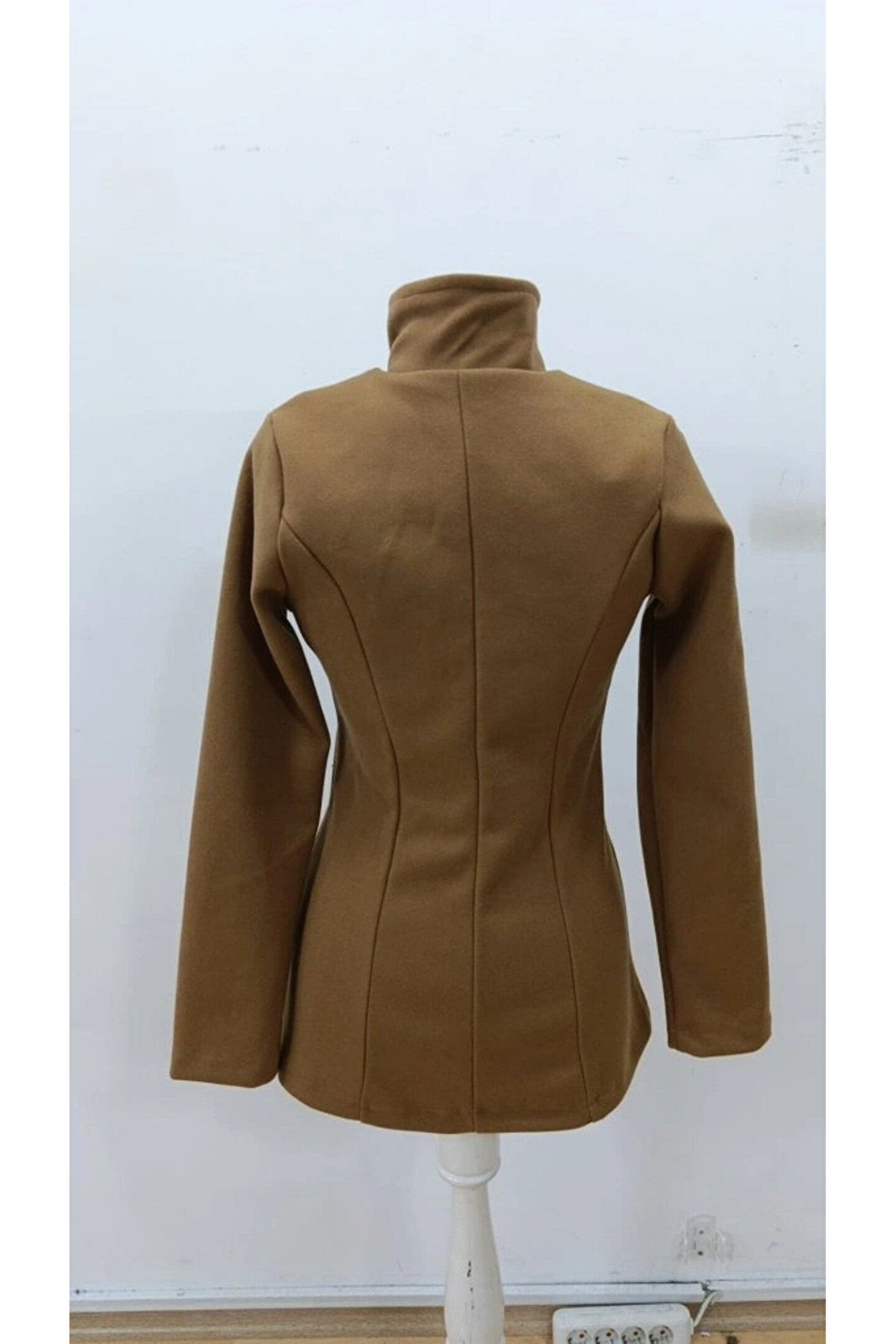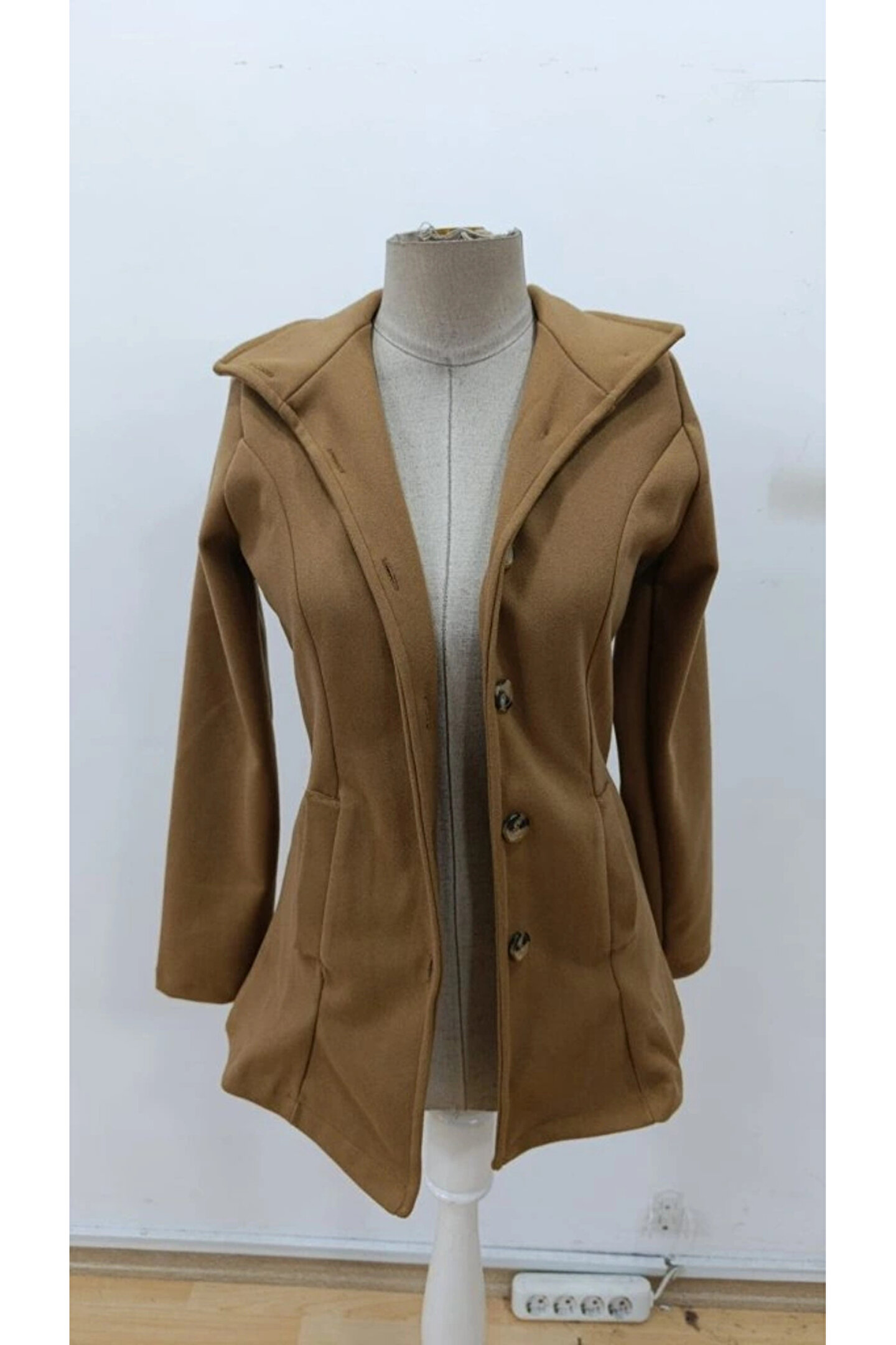 Kadın Uzun Kollu Yakalı önden Düğmeli Astarsız Ithal Kaşe Kahve Kaban