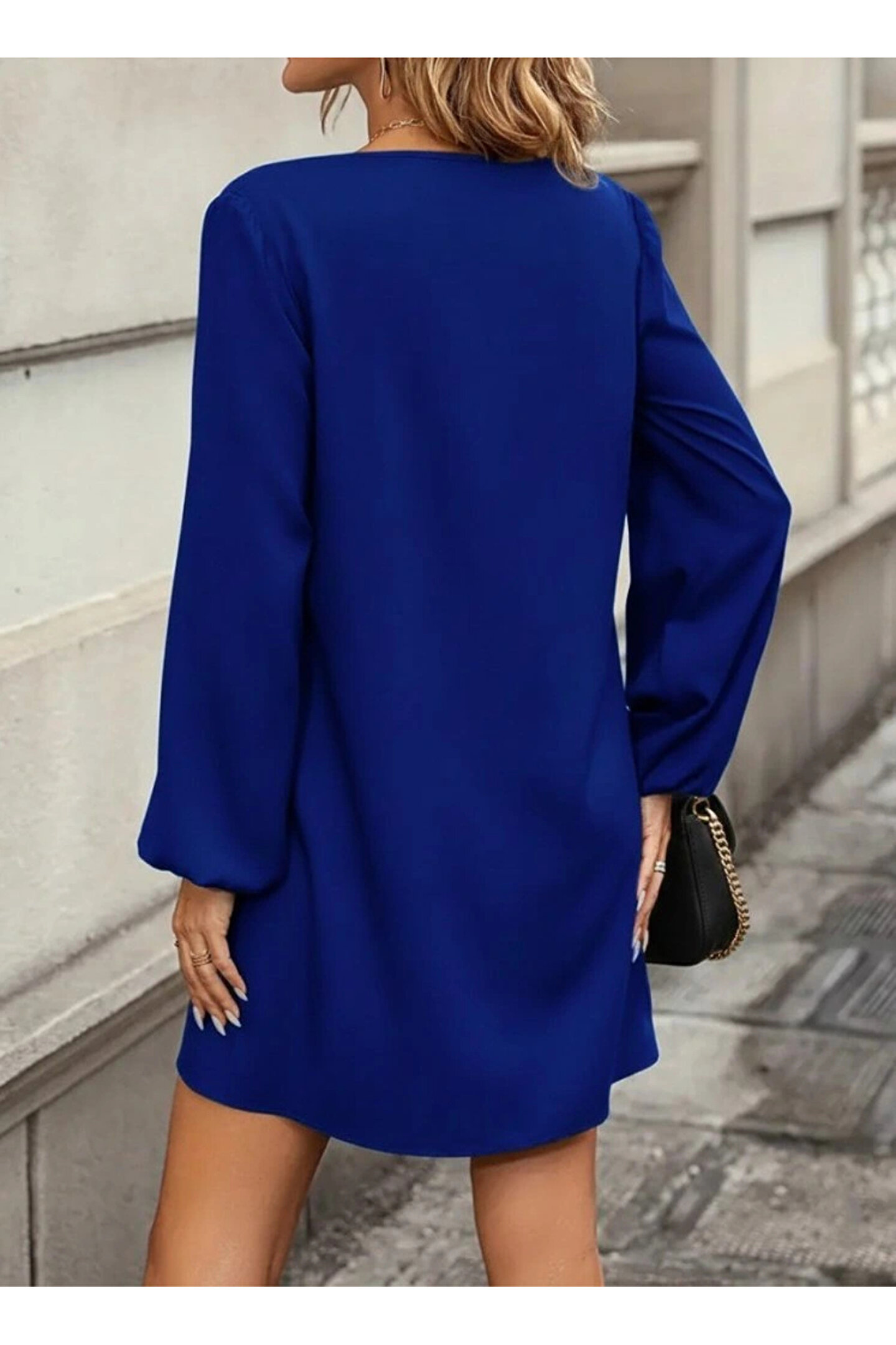 Kadın Uzun Kollu Yuvarlak Yaka Mini Ithal Krep Elbise