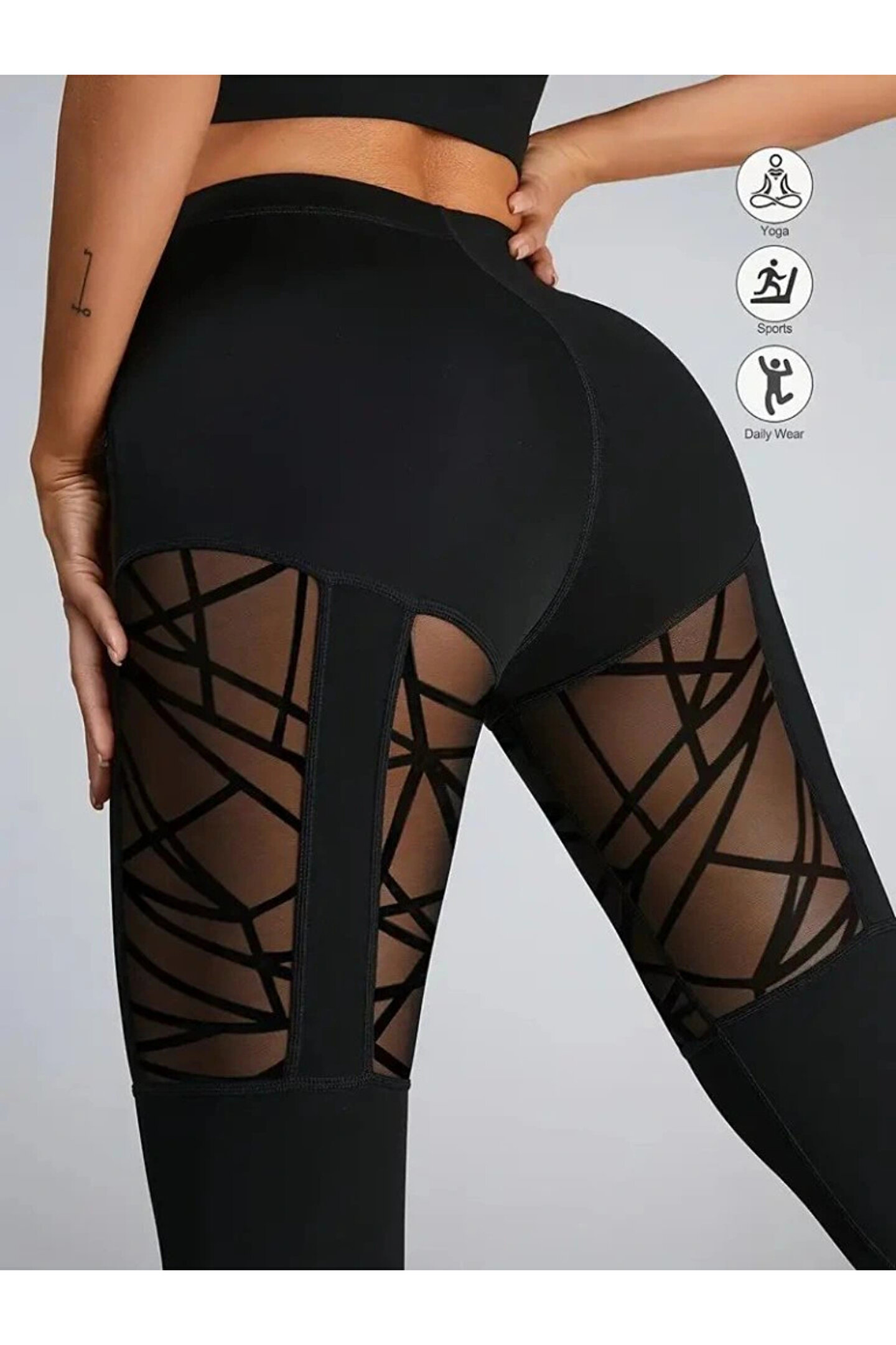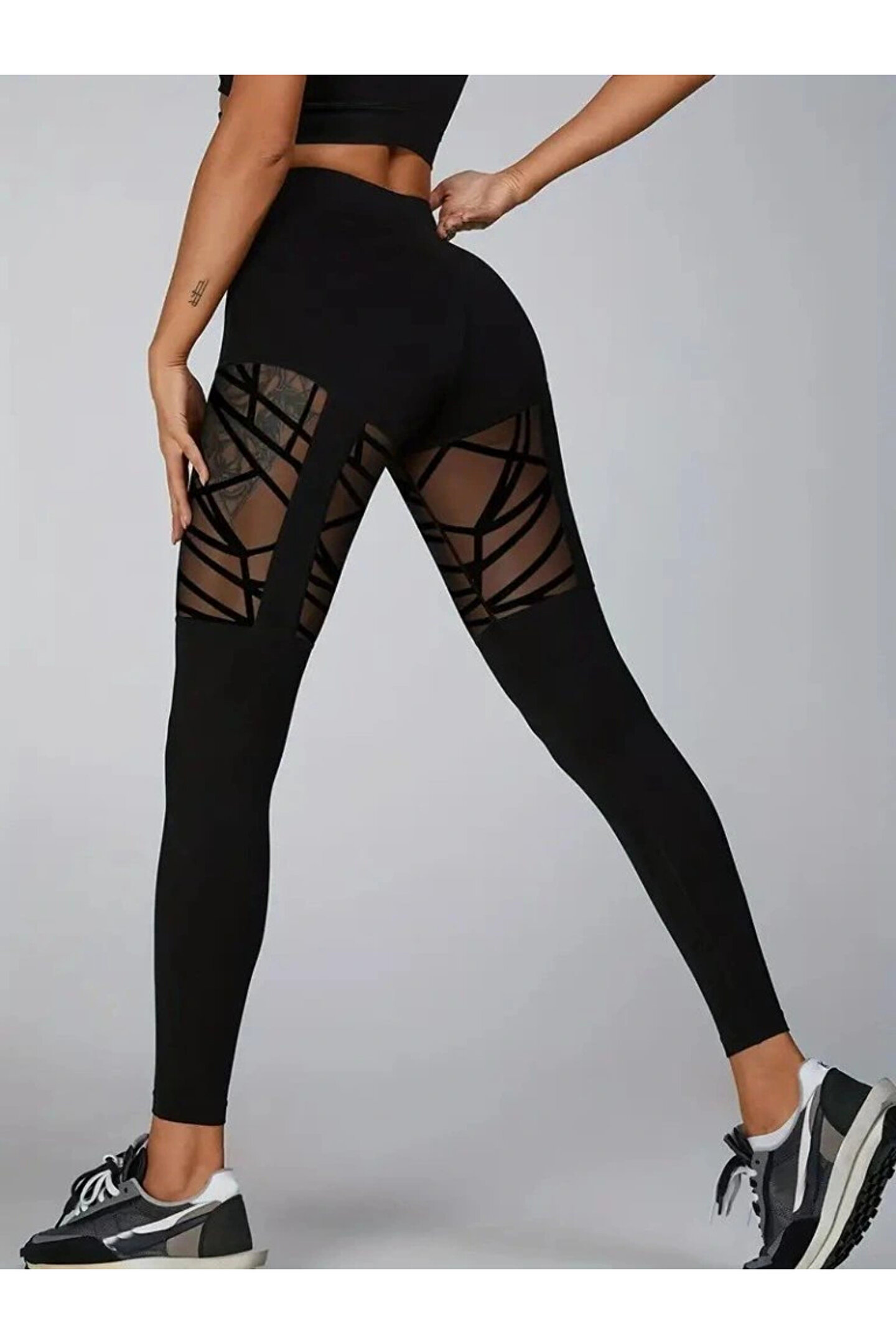 Kadın Yüksek Bel Tül Detaylı Spor Tayt