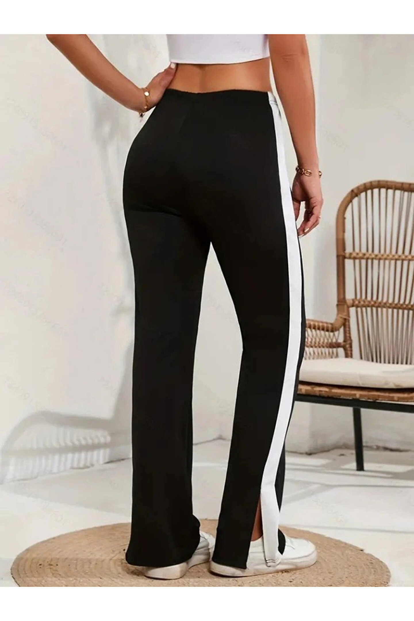 Kadın Yüksek Bel Yan şerit Detaylı Yırtmaçlı Viskon Iki Iplik Pantolon