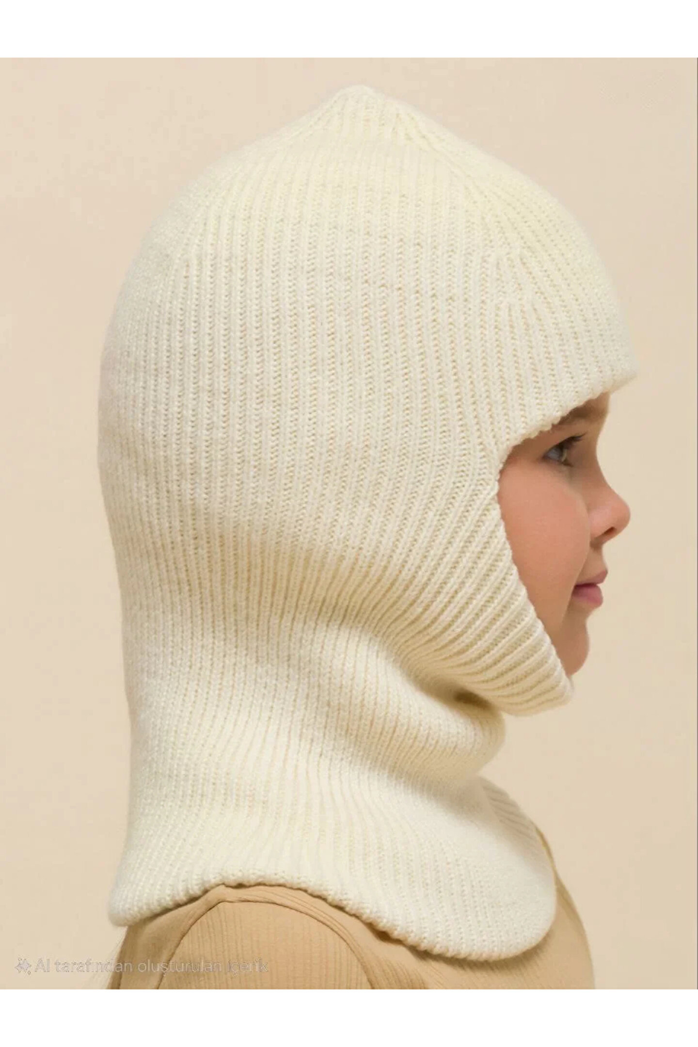 Silerra Kışlık Kar Maske Çocuk Triko Bere - Krem