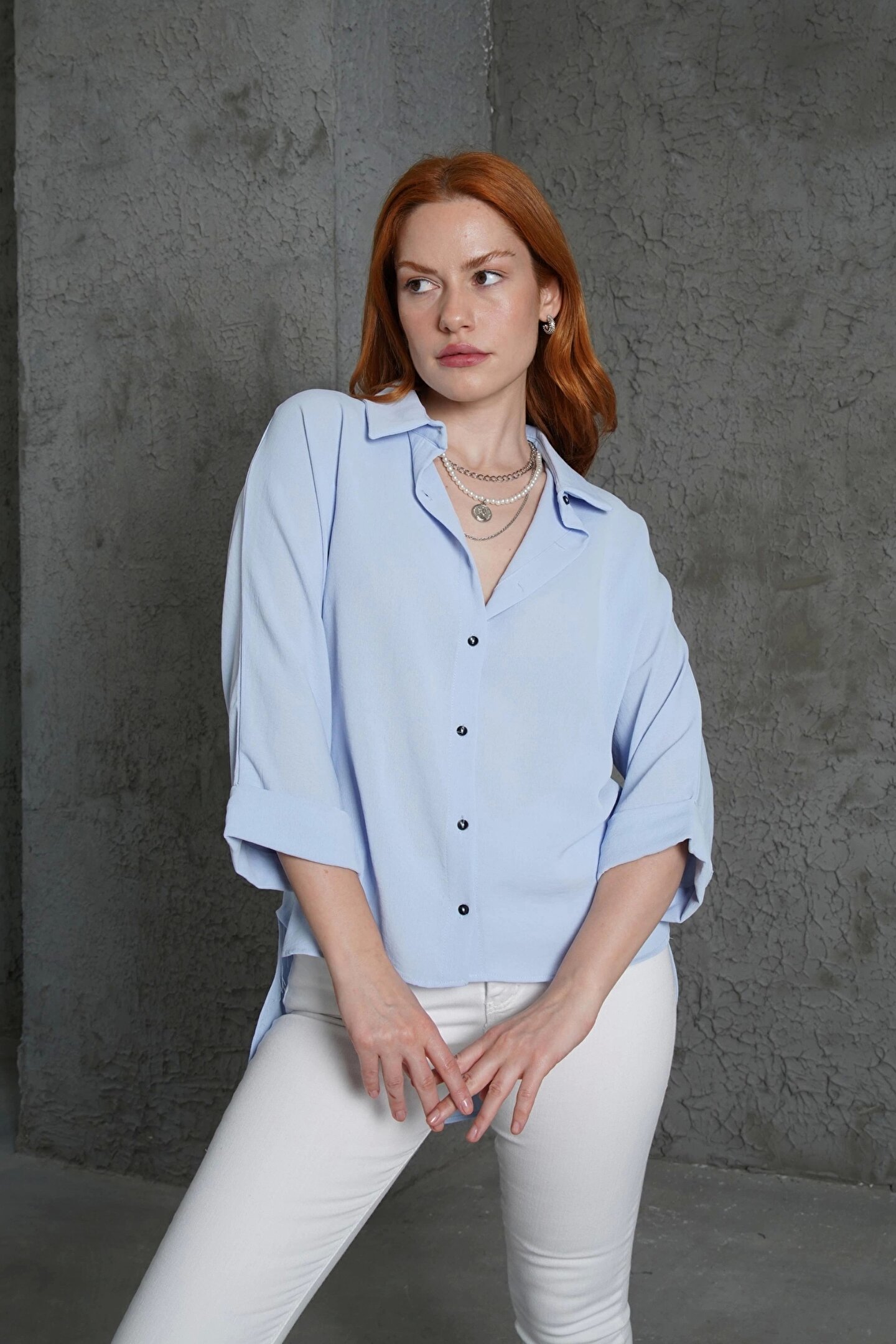 Kol Katlama Detaylı Bebe Mavi Gömlek