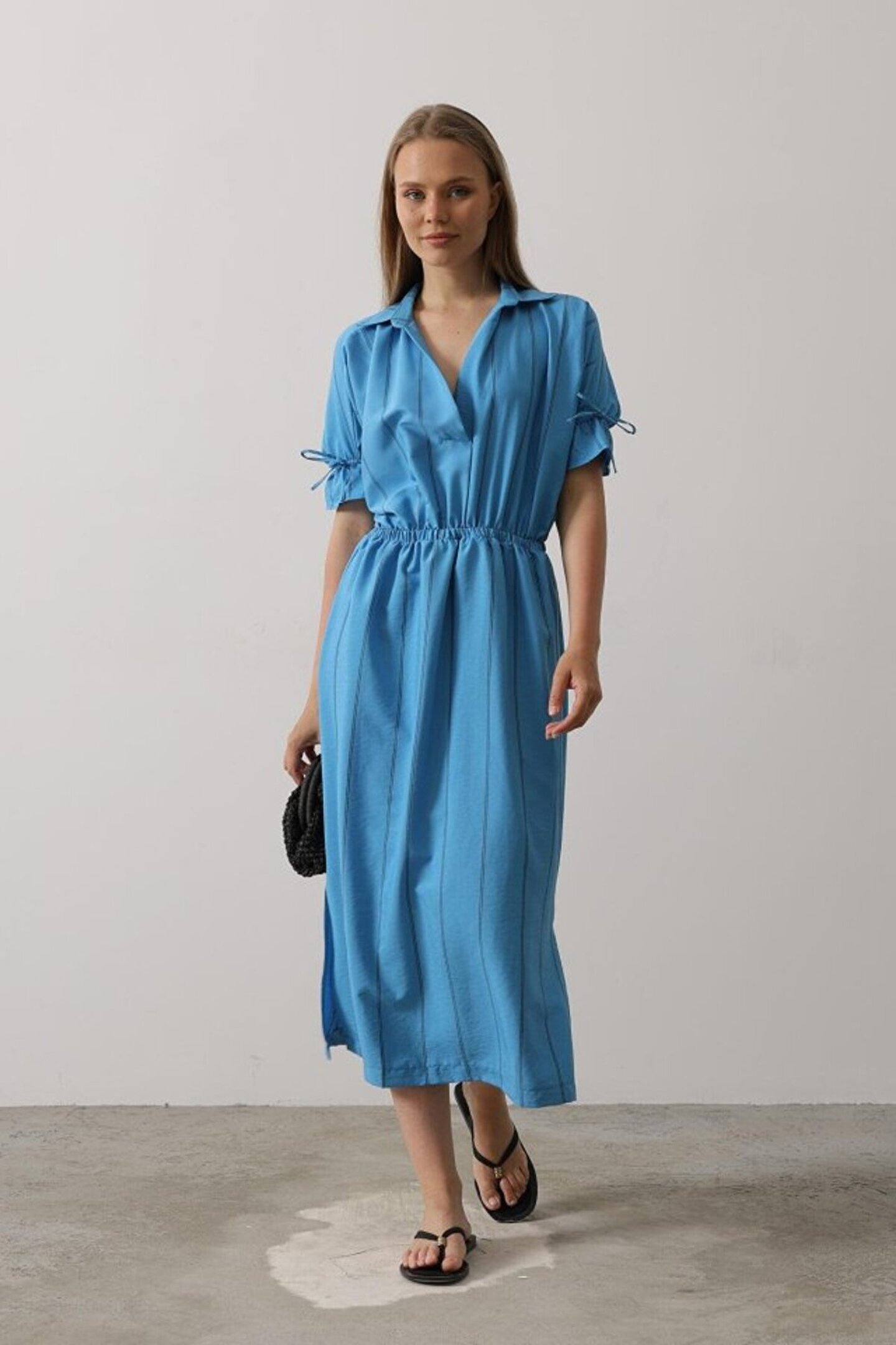 Silerra munn collection Beli Lastikli Elbise - Mavi