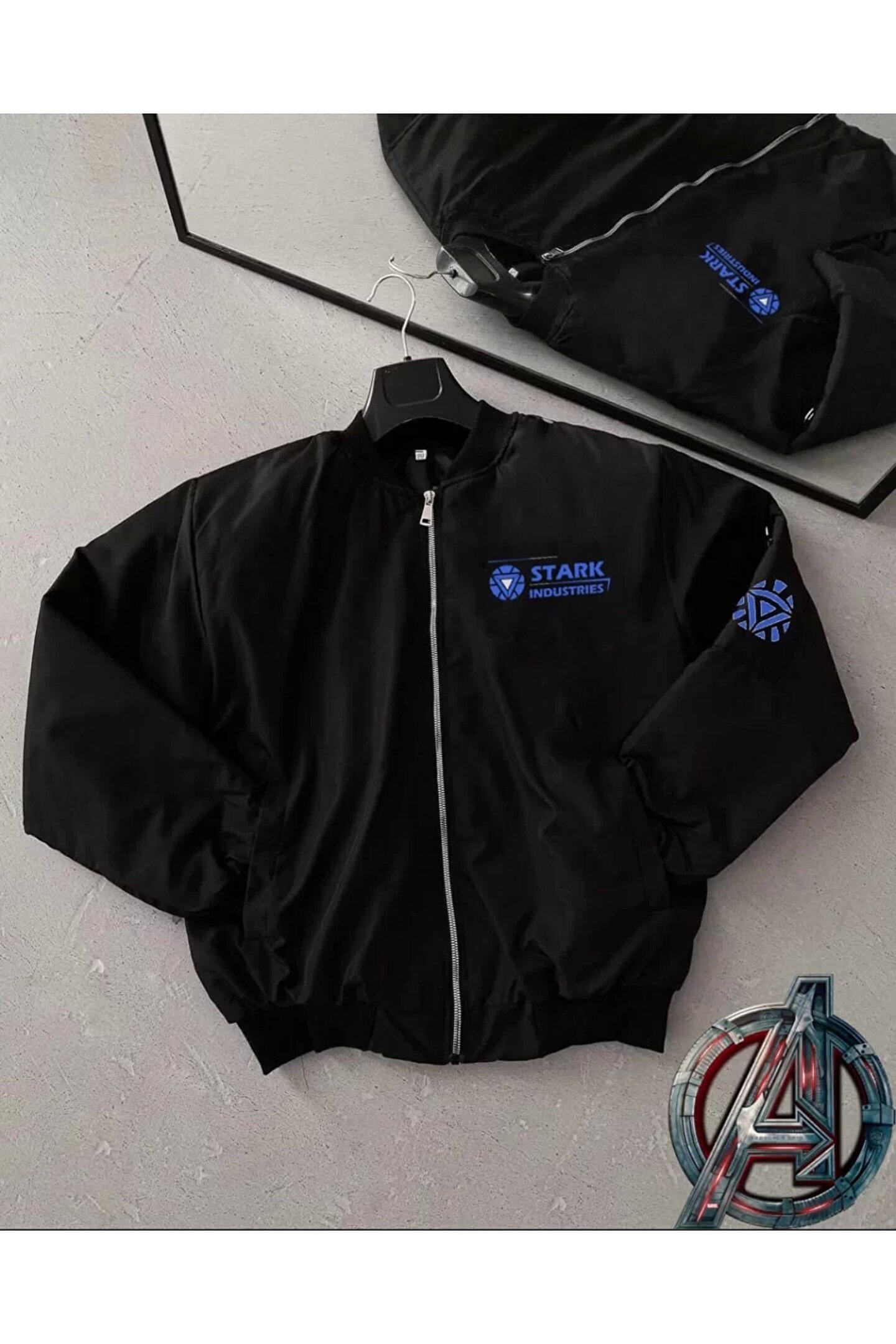 Tam Kalıp Uzun Kol Baskılı Bomber Ceket - Siyah