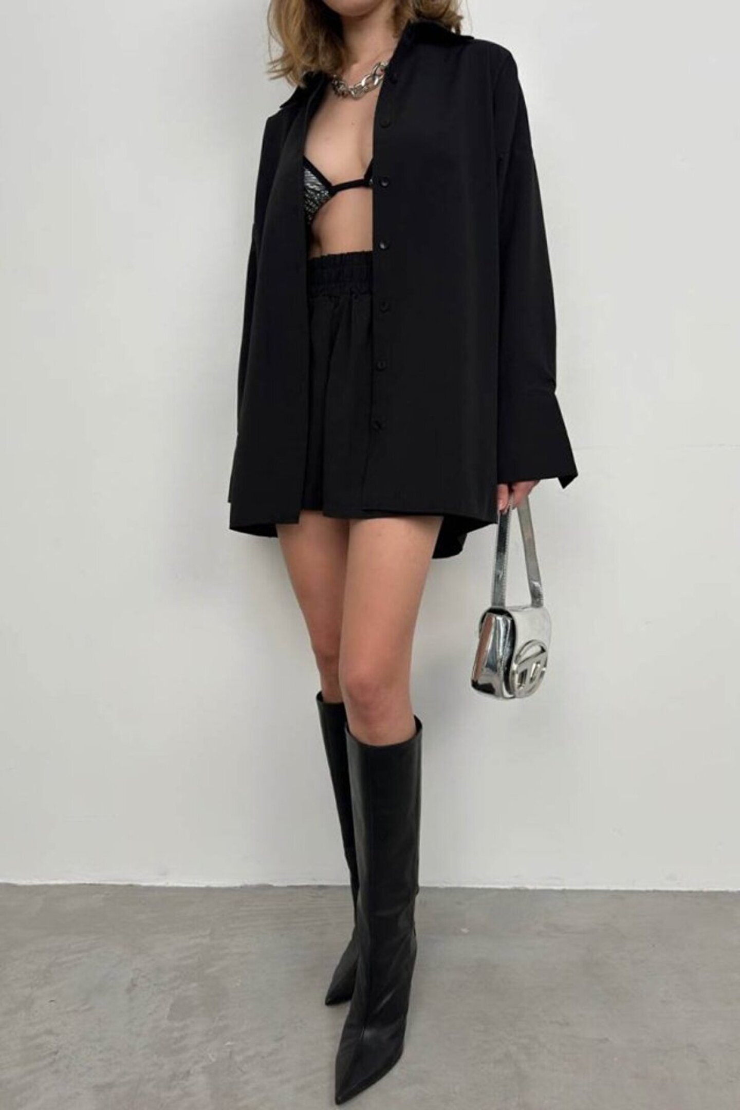 Oversize Gömlek Büzgülü Şort Takım