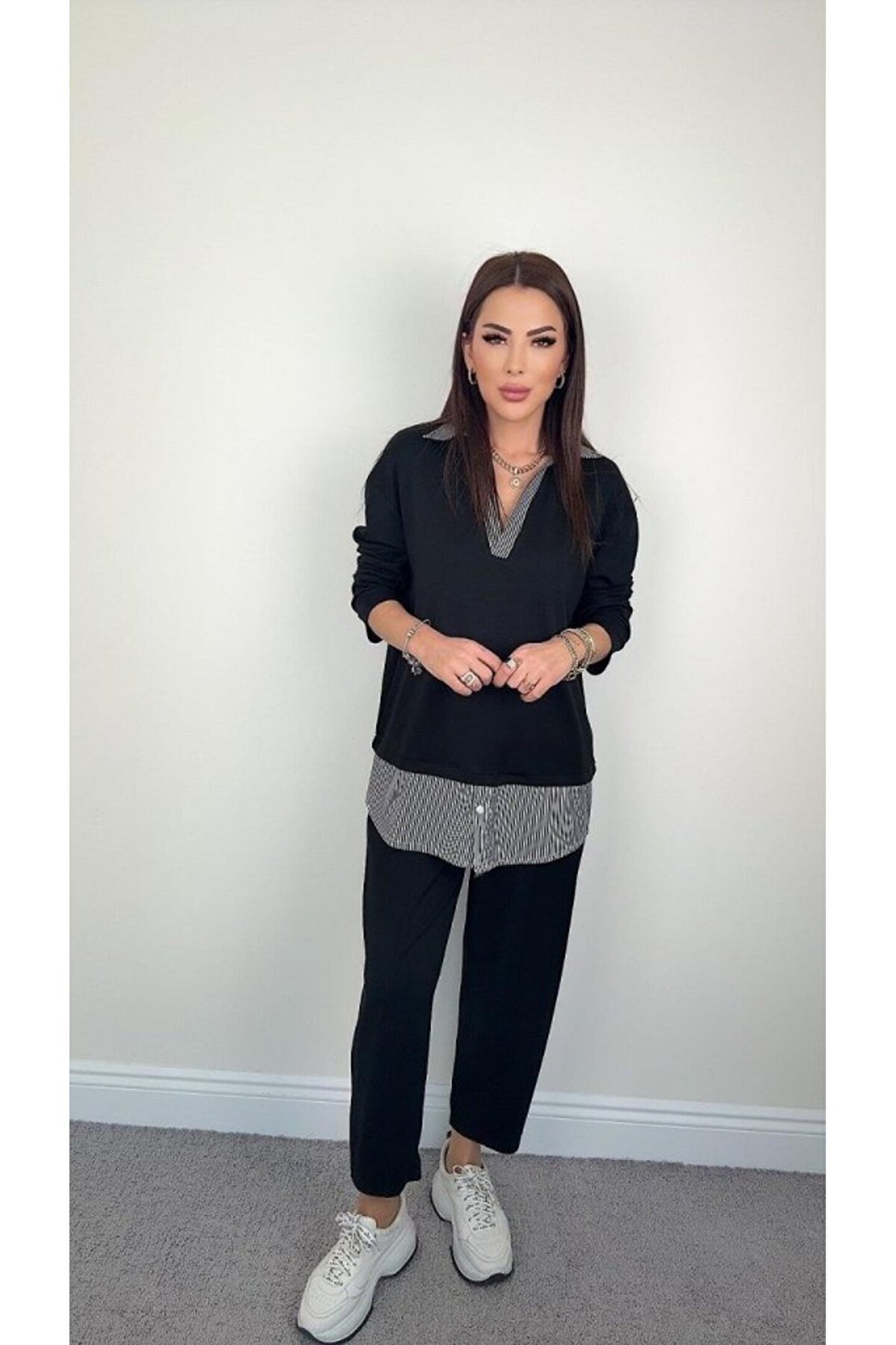 Silerra Polo Yaka Gömlek Detay Salaş Balon Pantolunlu ıkılı Takım