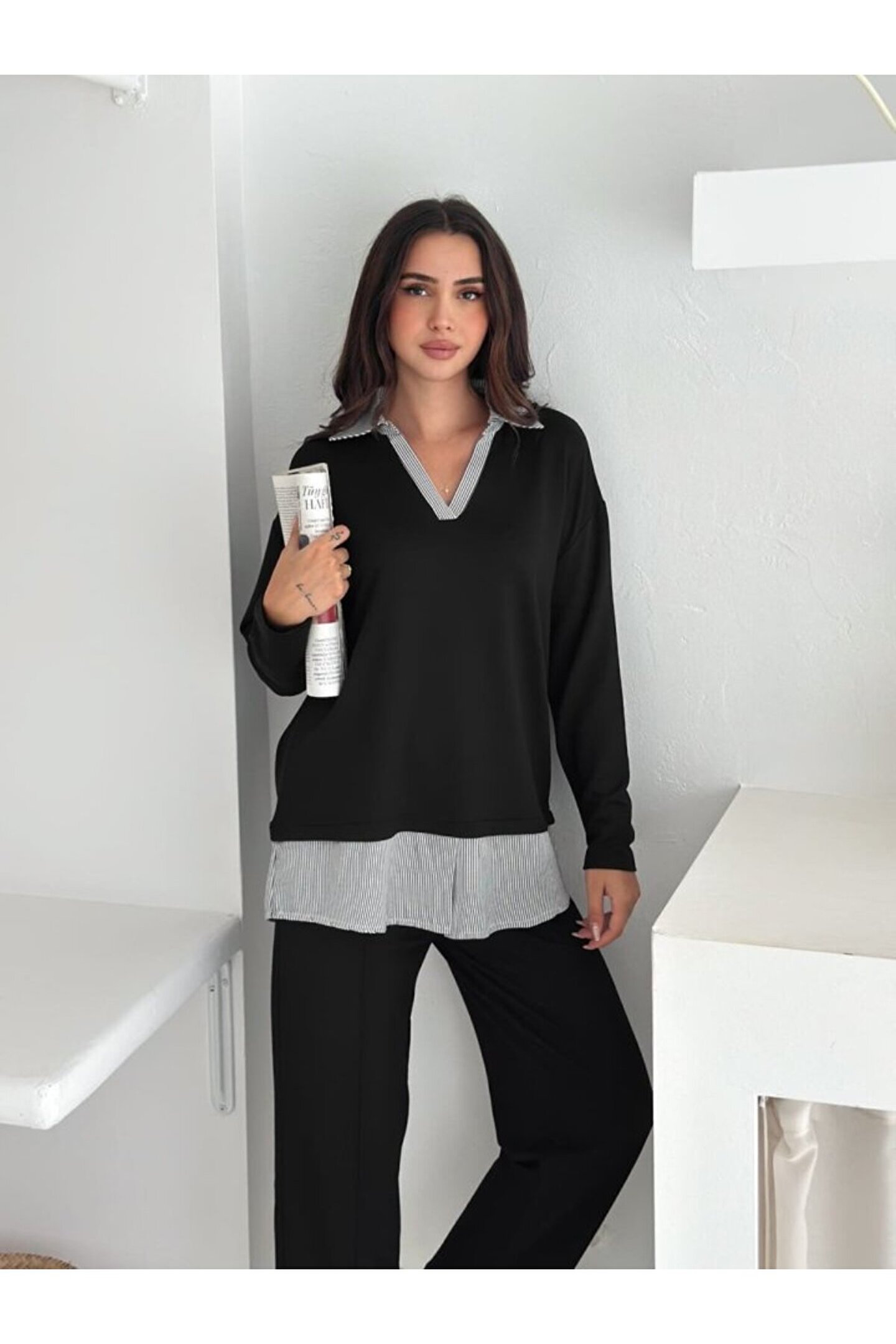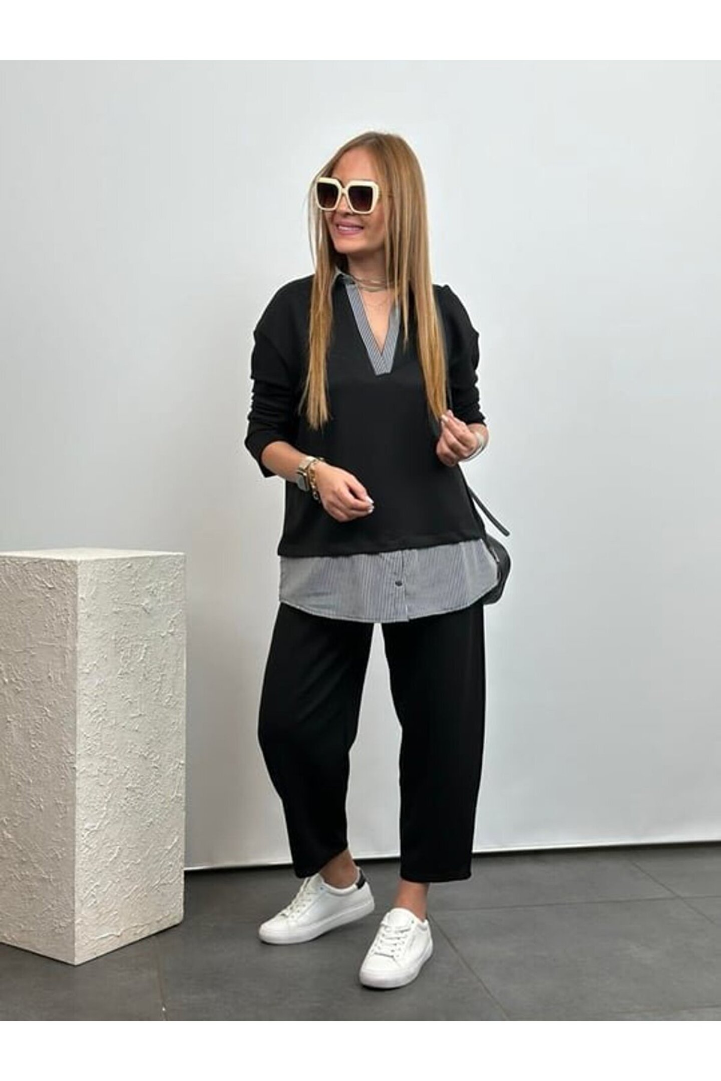 Silerra Polo Yaka Gömlek Detay Salaş Balon Pantolunlu ıkılı Takım