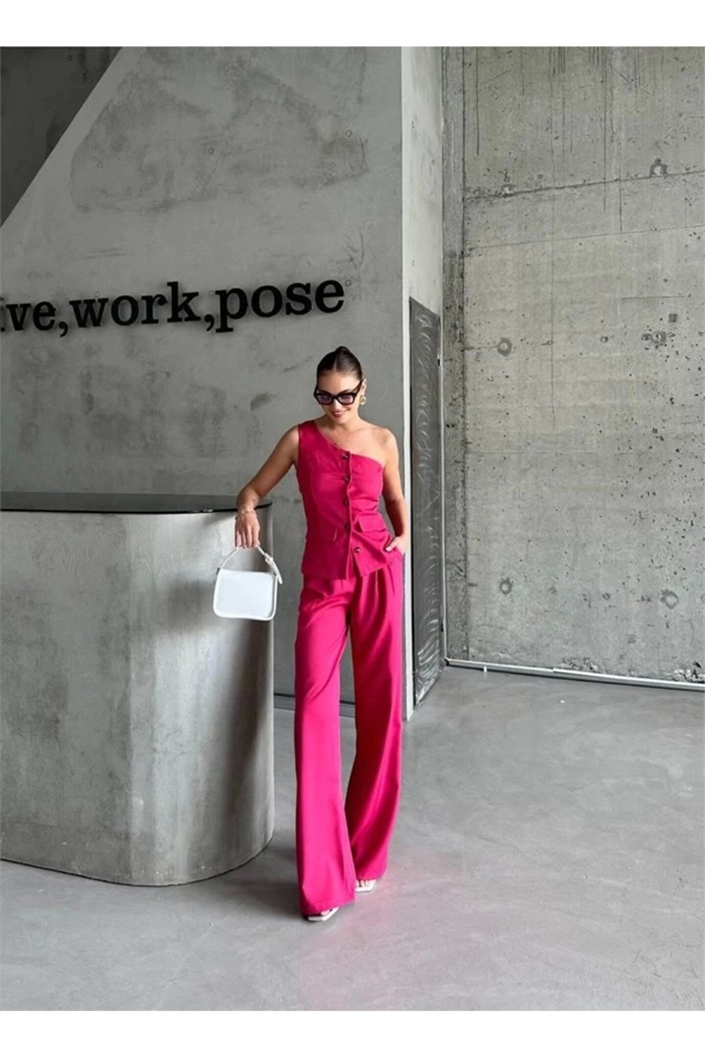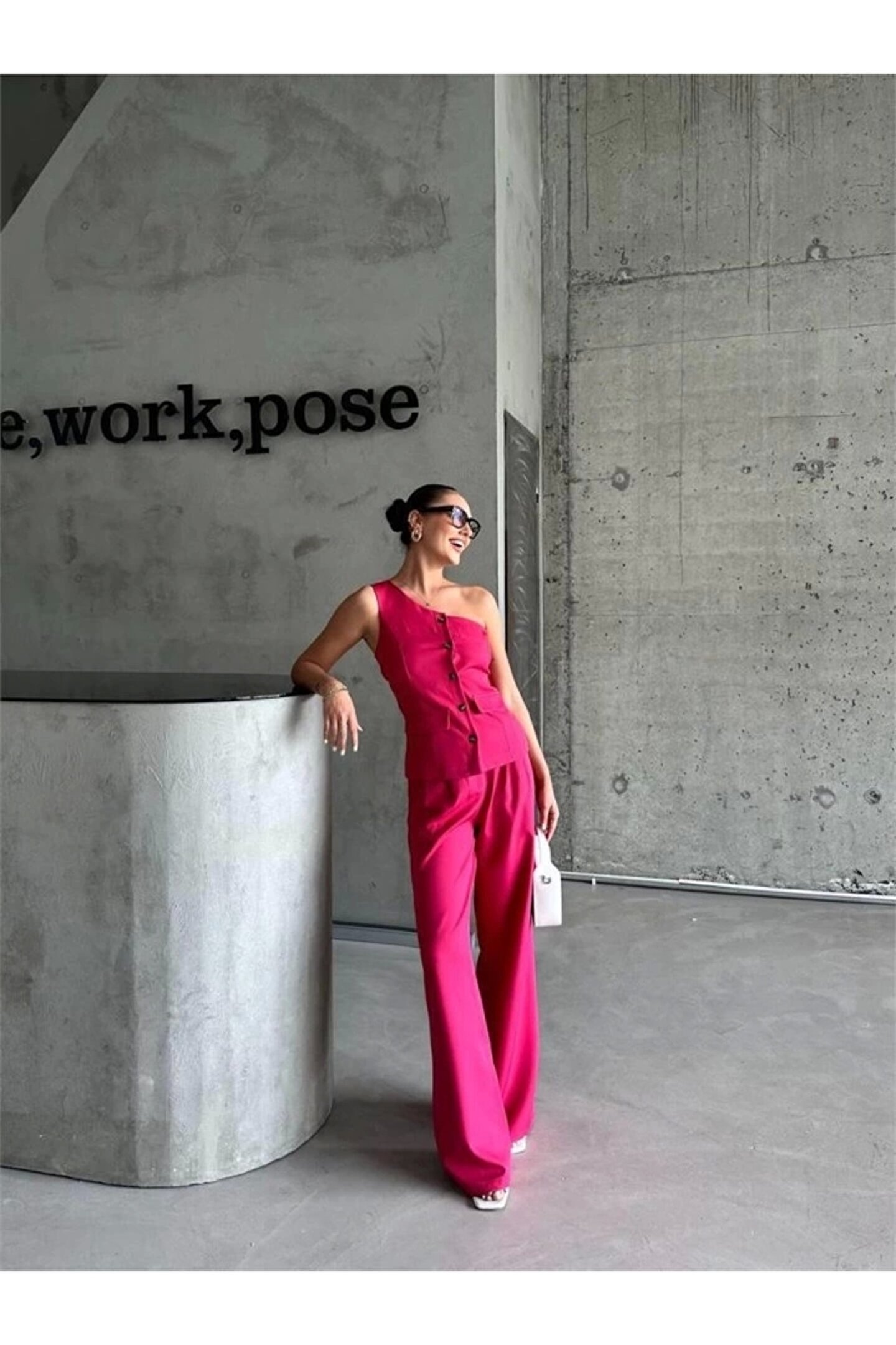 TEK KOL YELEK - PANTOLON TAKIM ATLAS - Fuşya