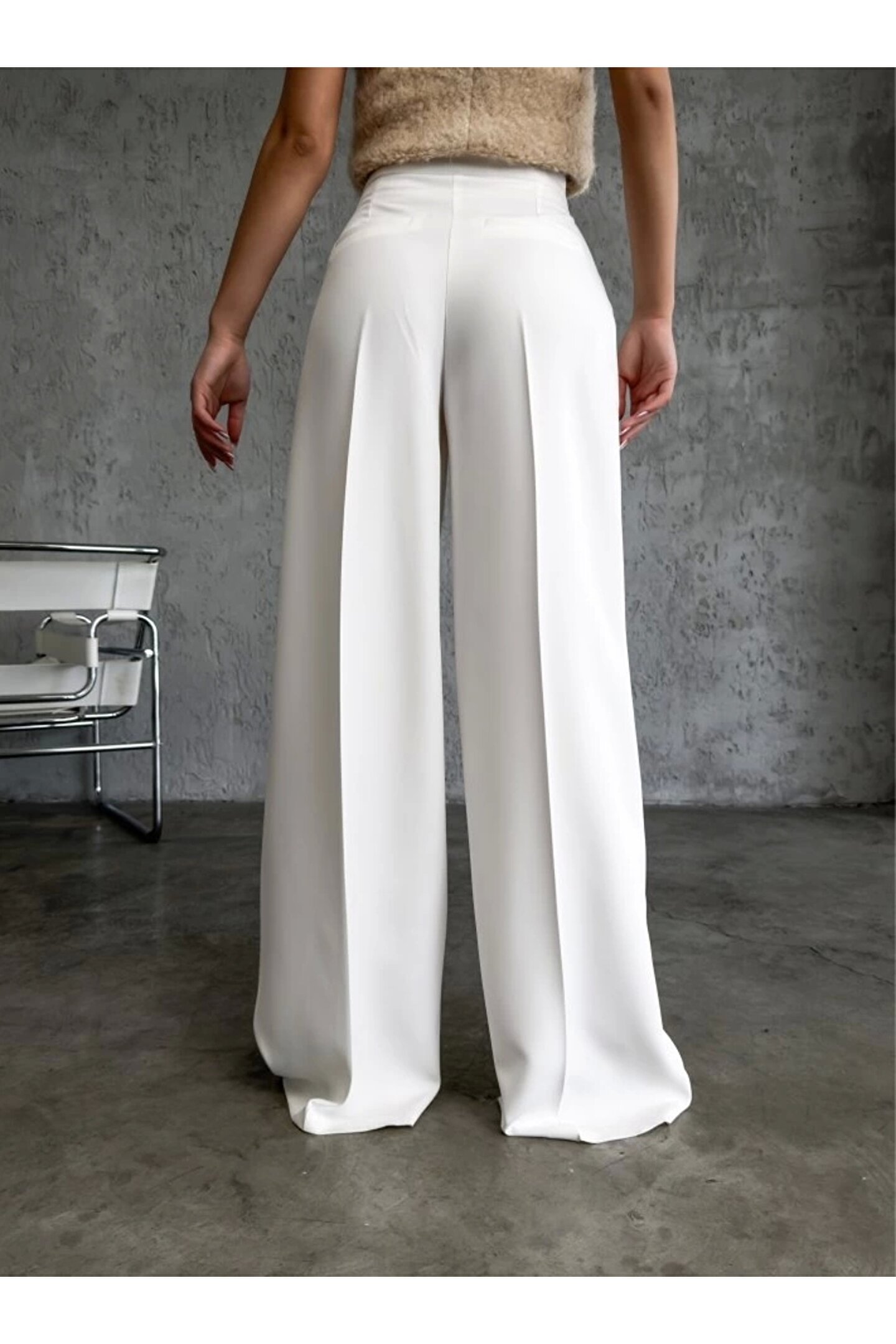 Üç Düğme Detayli Palazzo Pantolon