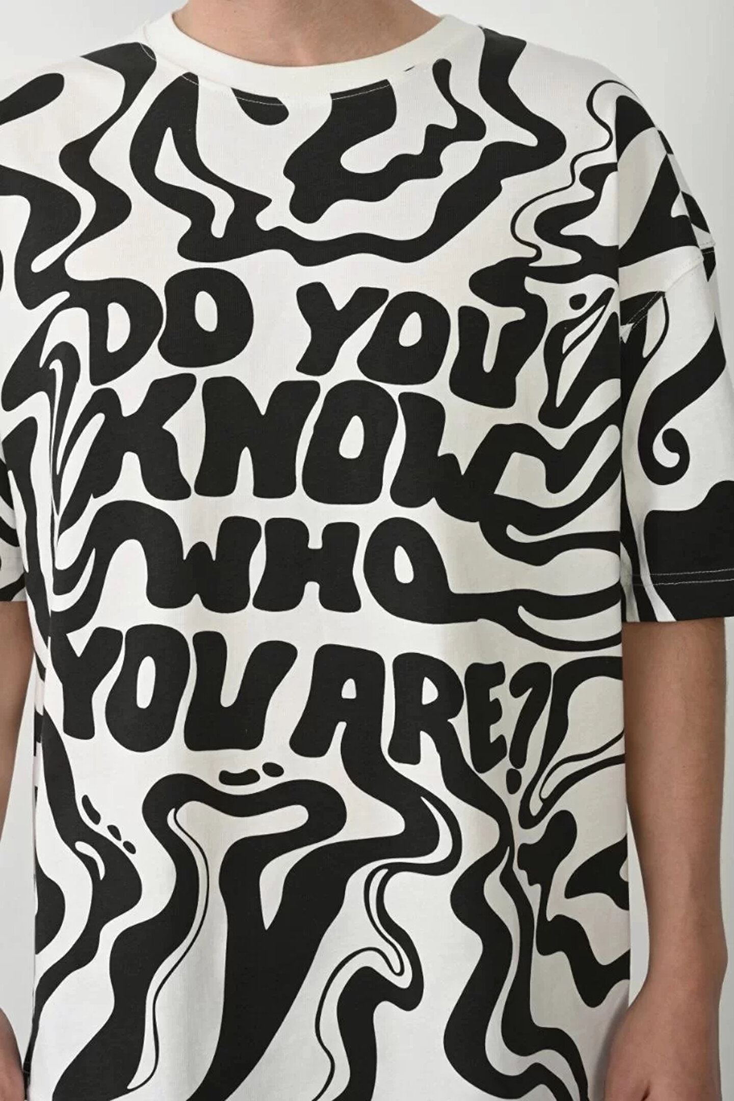 Silerra Unisex Baskılı Bisiklet Yaka Oversize T-Shirt - Beyaz