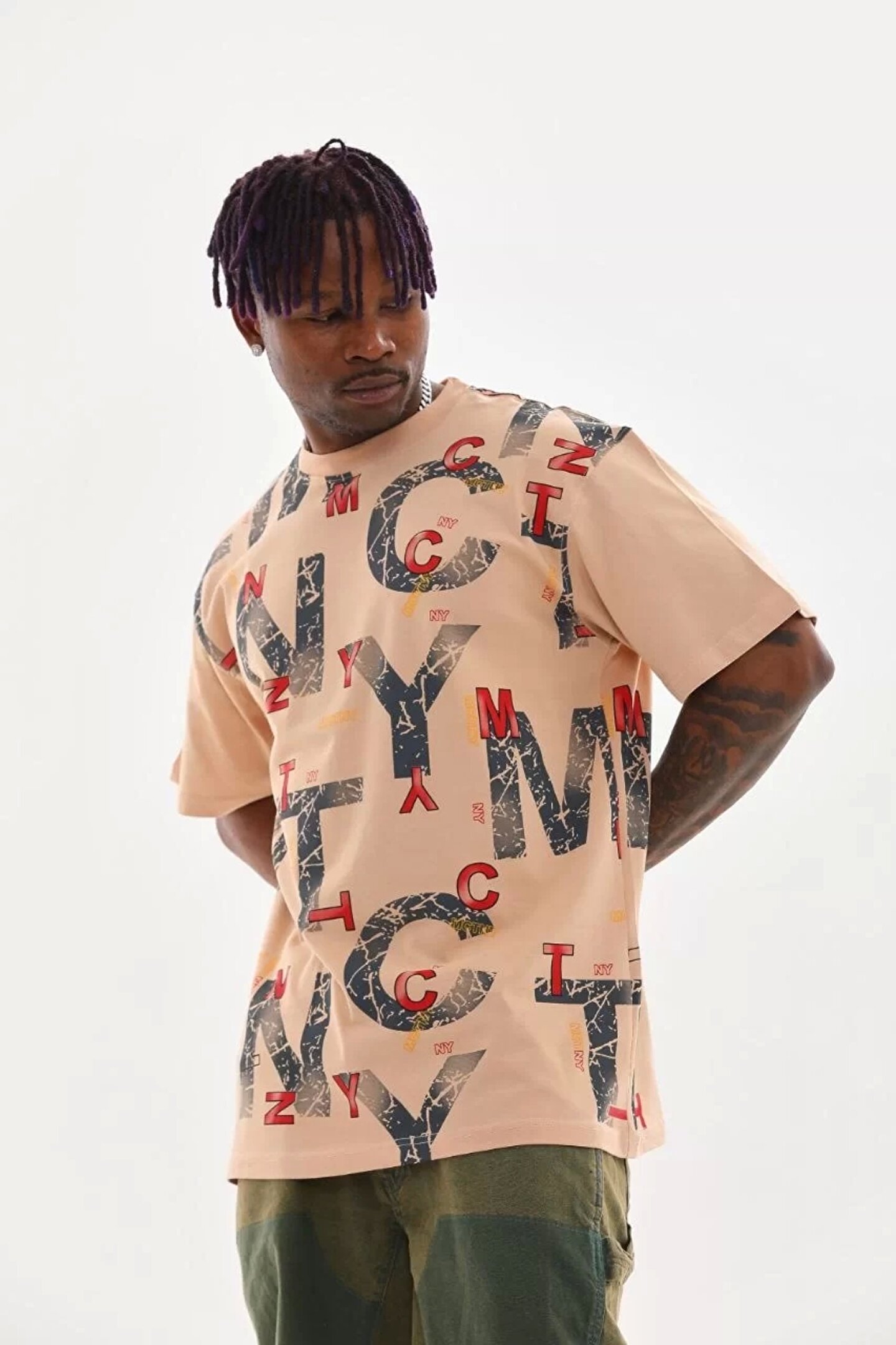 Silerra Unisex Baskılı Oversize T-Shirt - Bej