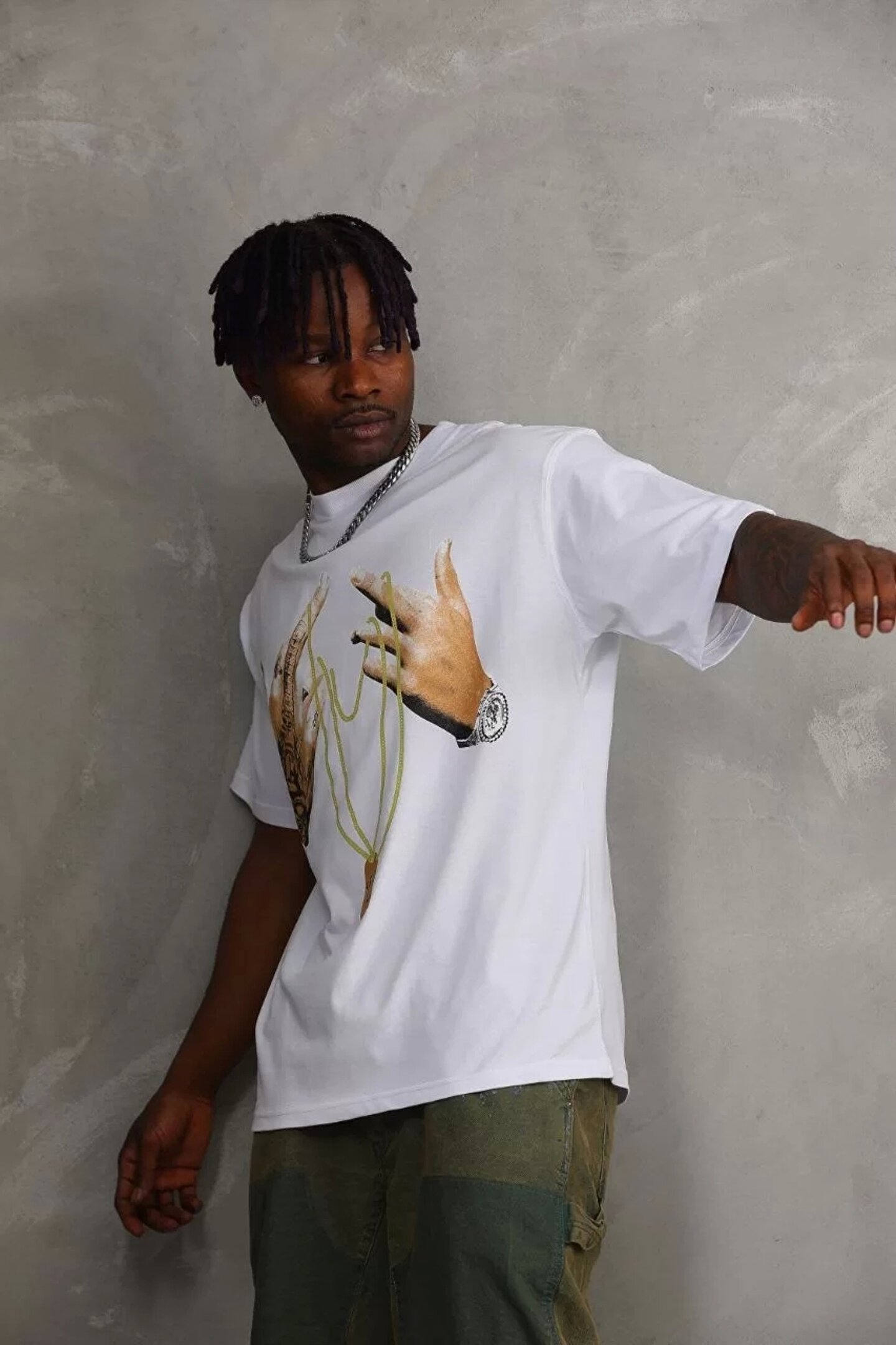 Unisex Baskılı Oversize T-Shirt - Beyaz