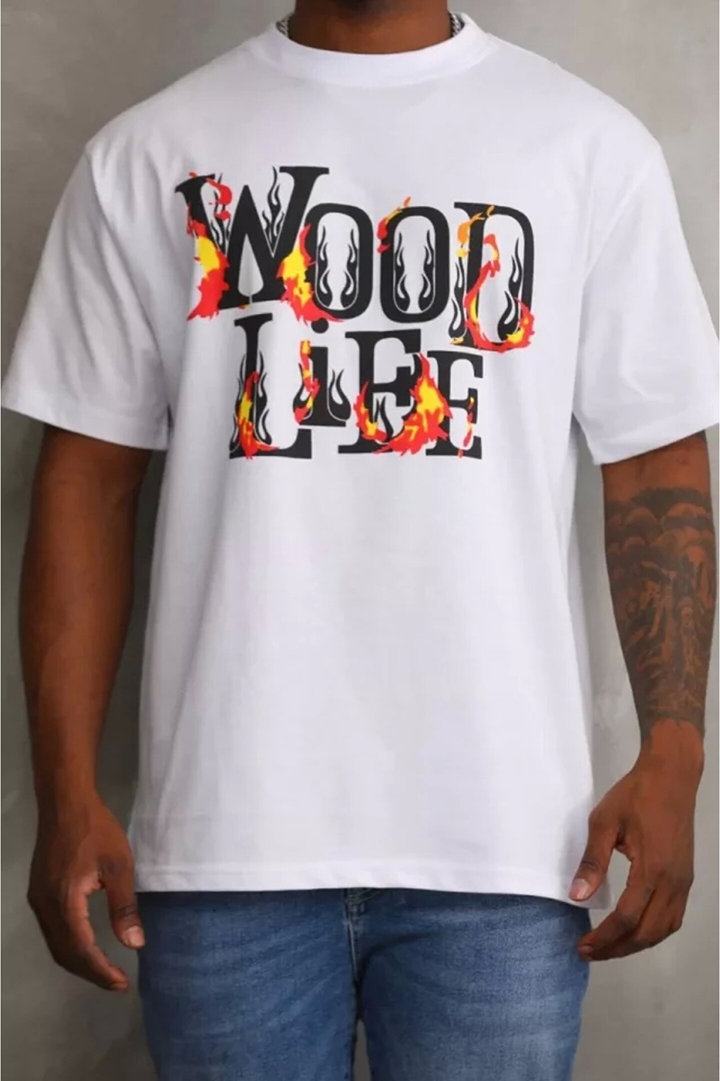 Unisex Baskılı Oversize T-Shirt - Beyaz