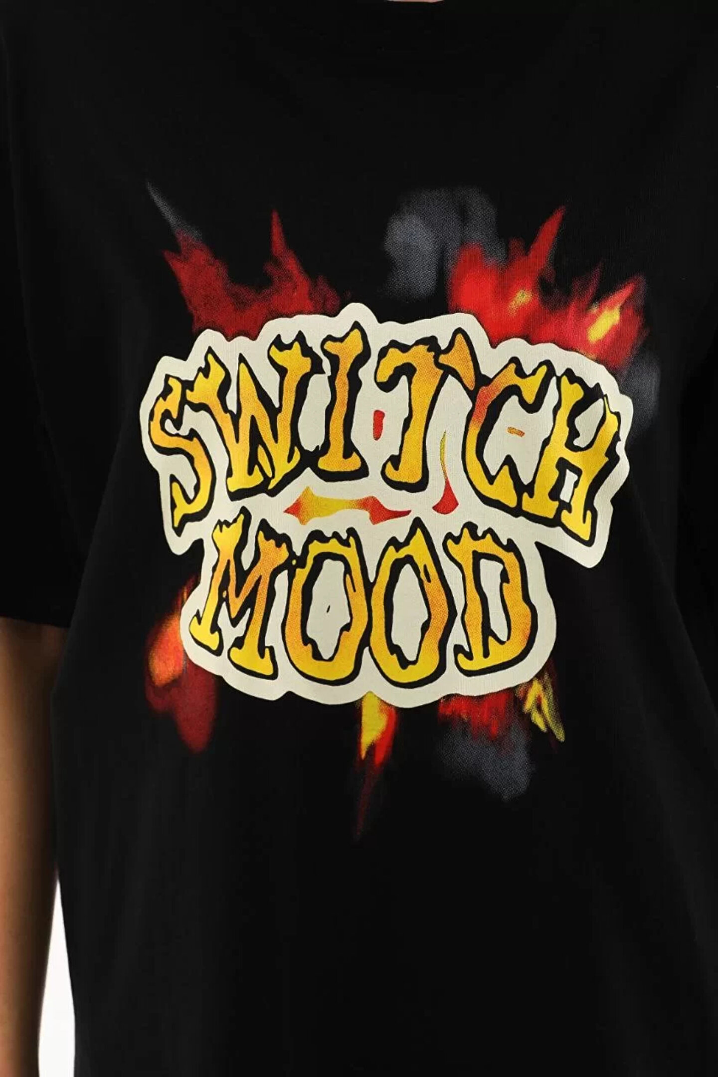 Silerra Unisex Baskılı Oversize T-Shirt - Siyah