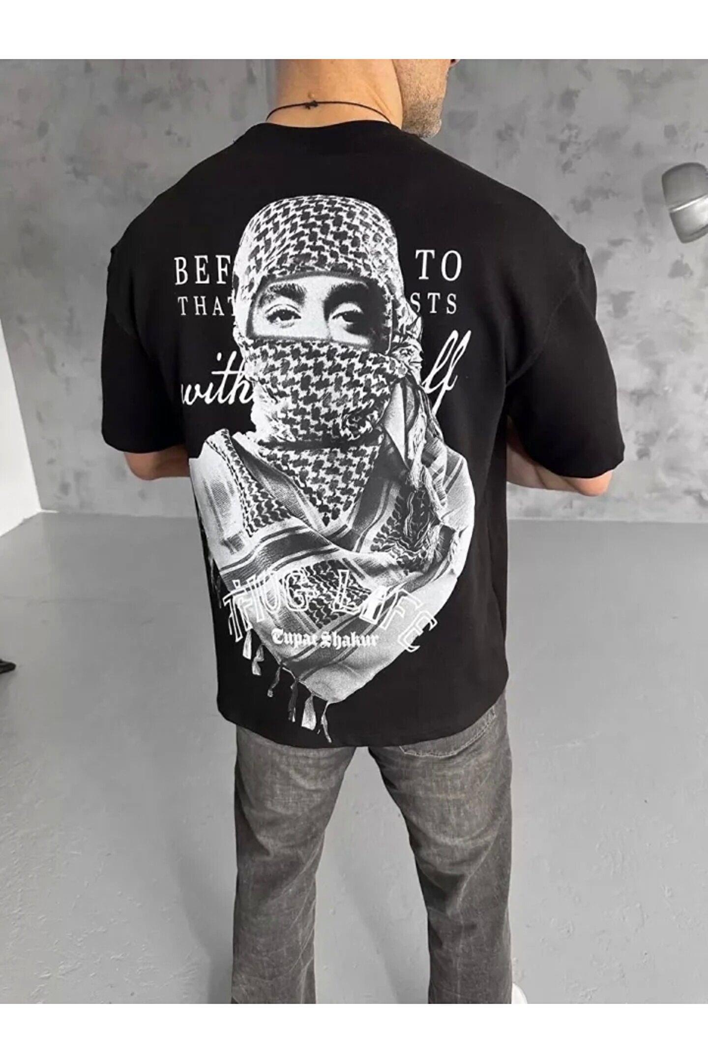 Unisex Baskılı Oversize T-Shirt - Siyah