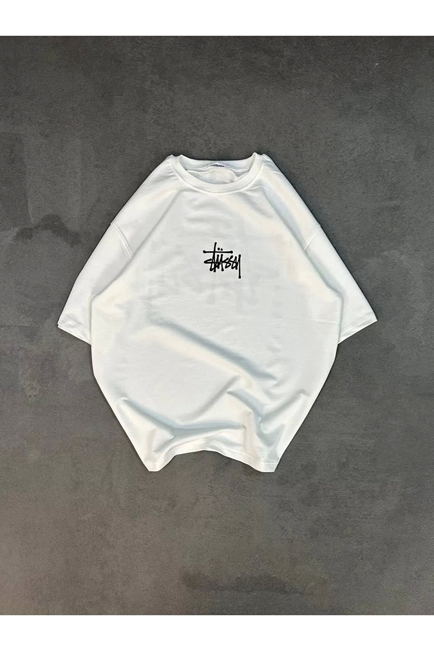 Silerra Unisex Bisiklet Yaka Baskılı Oversize T-Shirt - Beyaz