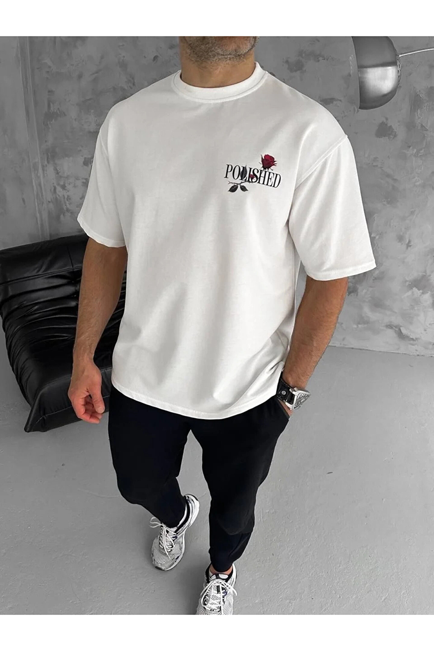 Silerra Unisex Bisiklet Yaka Baskılı Oversize T-Shirt - Beyaz