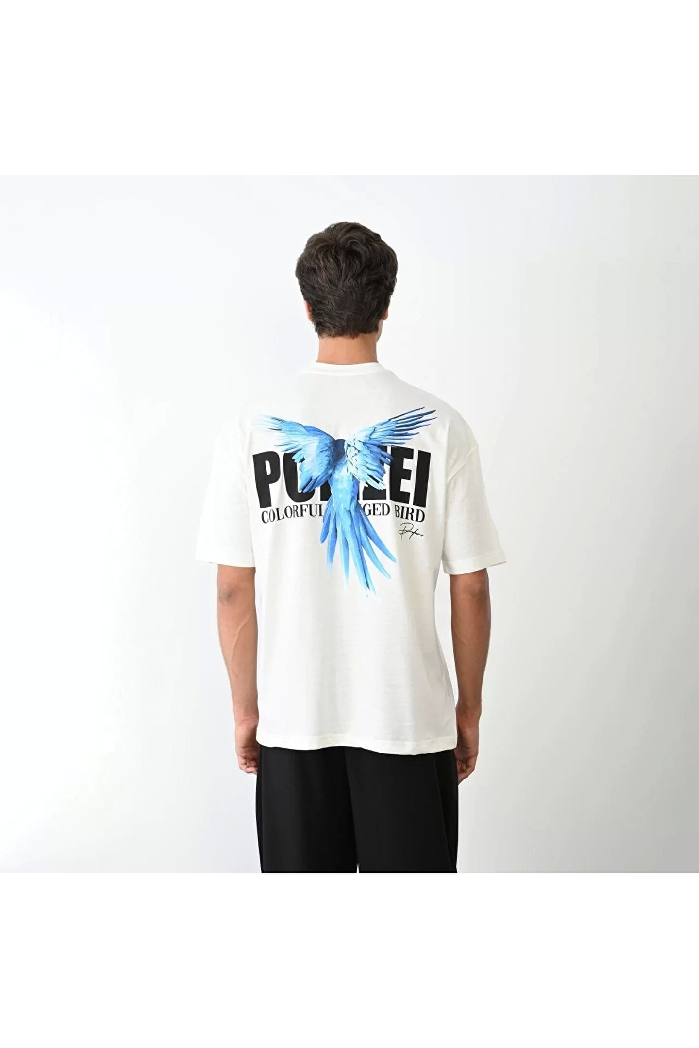 Silerra Unisex Bisiklet Yaka Baskılı Oversize T-Shirt - Beyaz