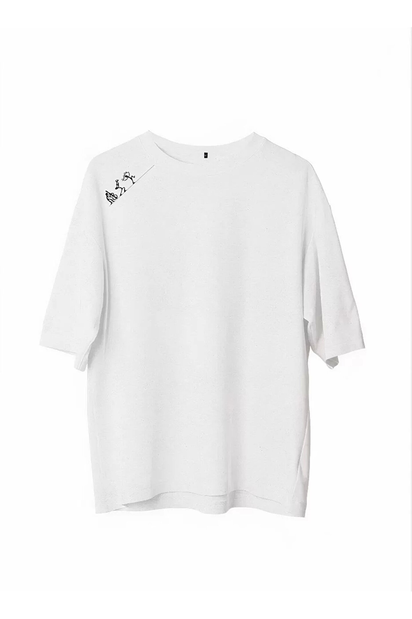 Silerra Unisex Bisiklet Yaka Baskılı Oversize T-Shirt - Beyaz