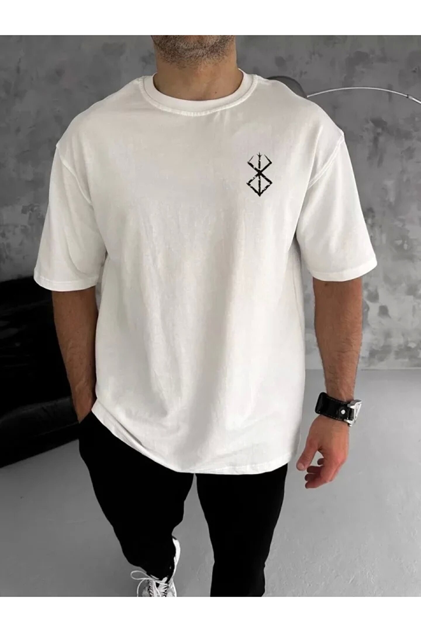 Silerra Unisex Bisiklet Yaka Baskılı Oversize T-Shirt - Beyaz