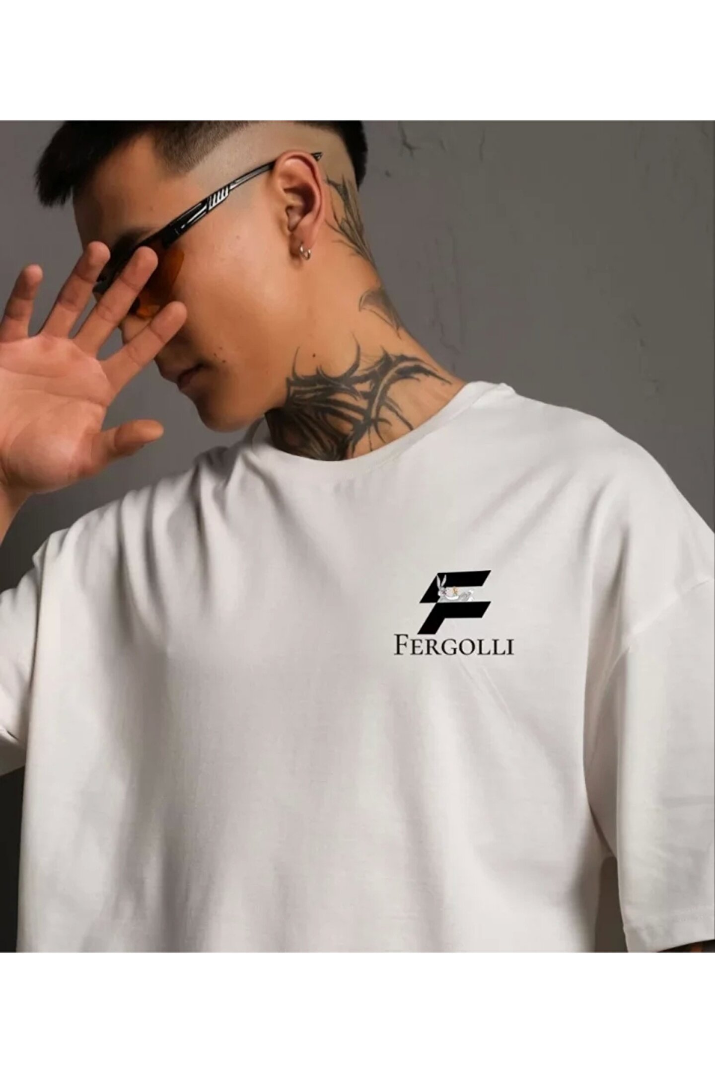 Silerra Unisex Bisiklet Yaka Baskılı Oversize T-Shirt - Beyaz